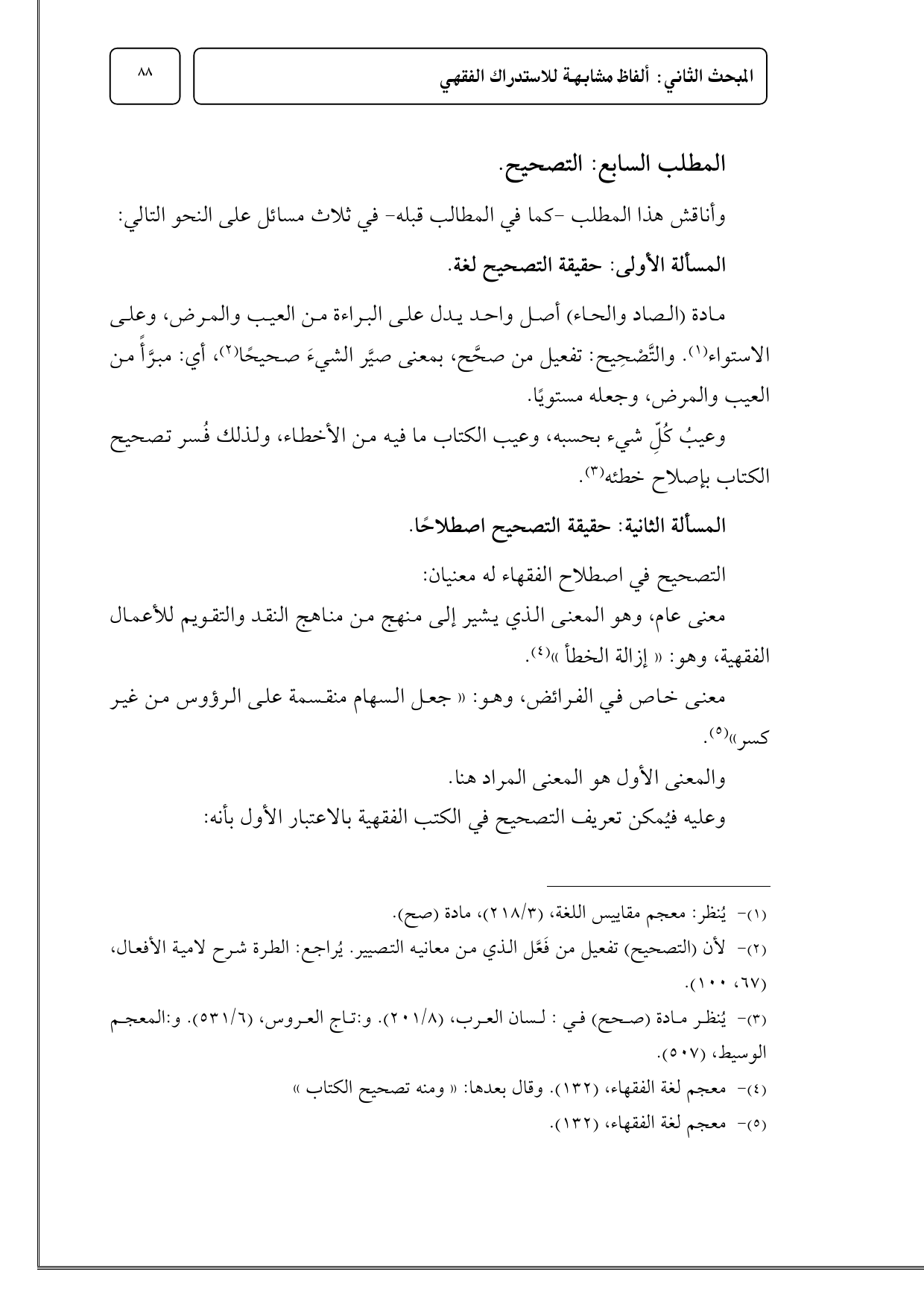 (¬4) معجم لغة الفقهاء، (132). وقال بعدها: «ومنه تصحيح الكتاب»