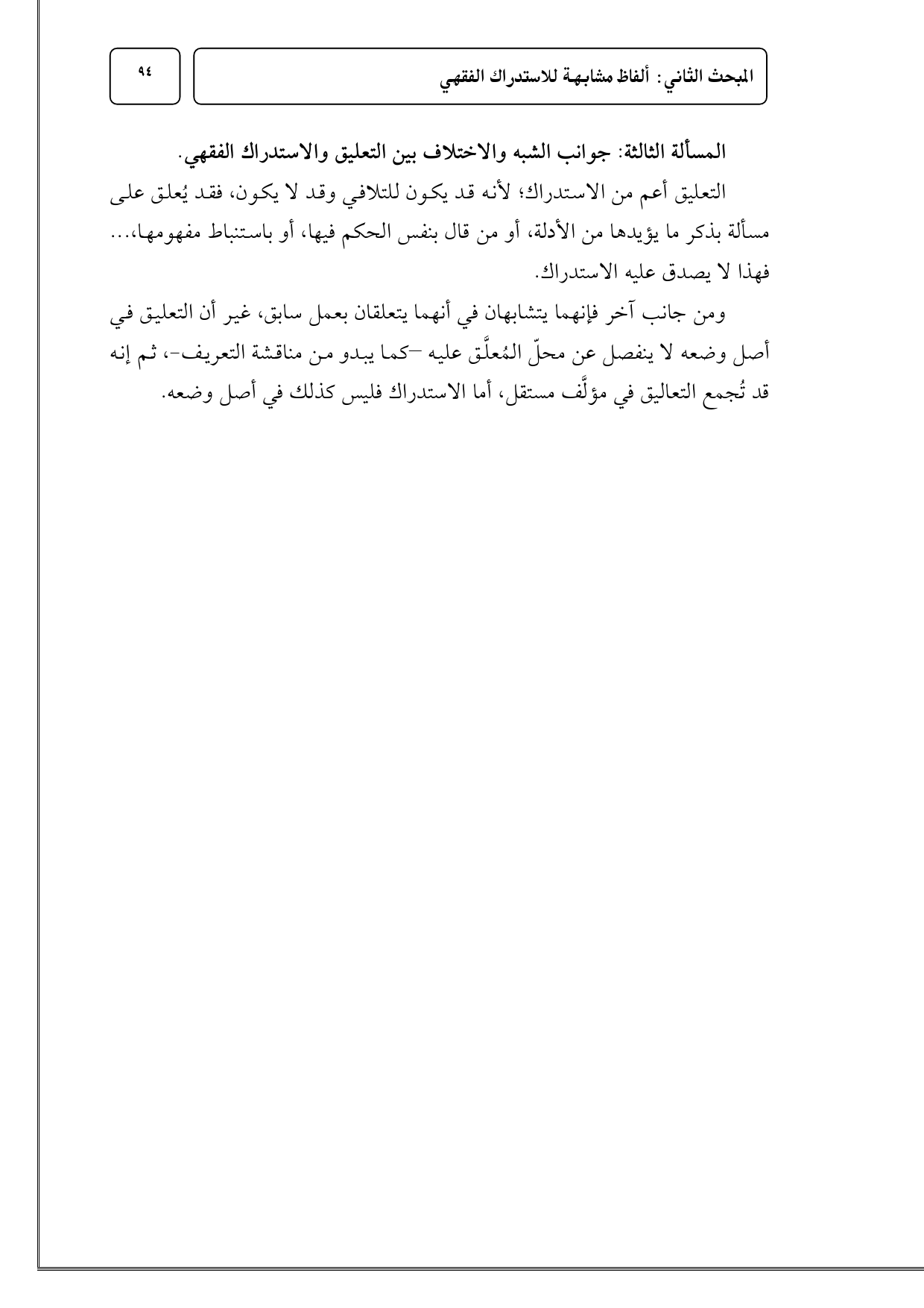 المسألة الثالثة: جوانب الشبه والاختلاف بين التعليق والاستدراك الفقهي.