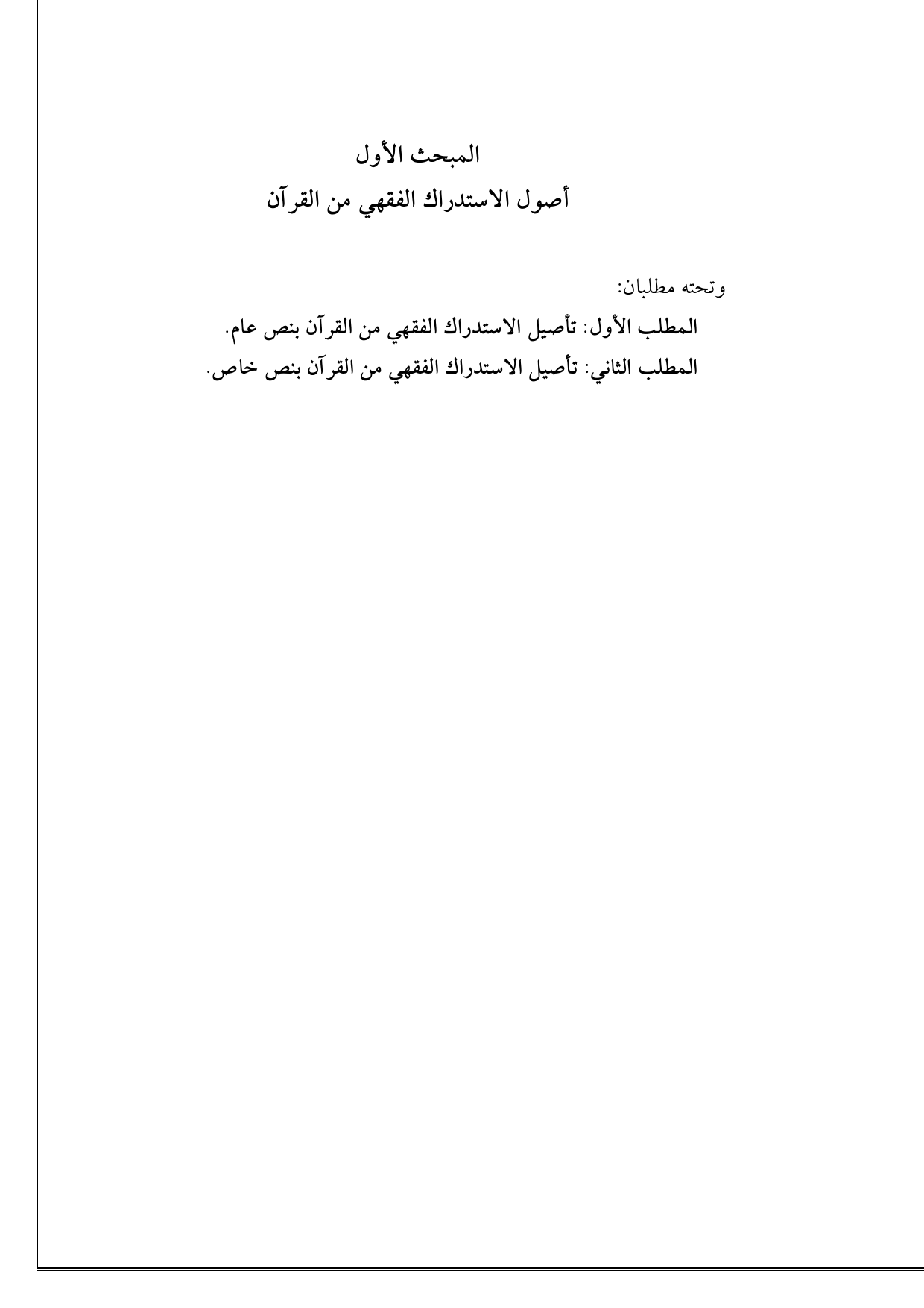 المطلب الأول: تأصيل الاستدراك الفقهي من الكتاب بنص عام.