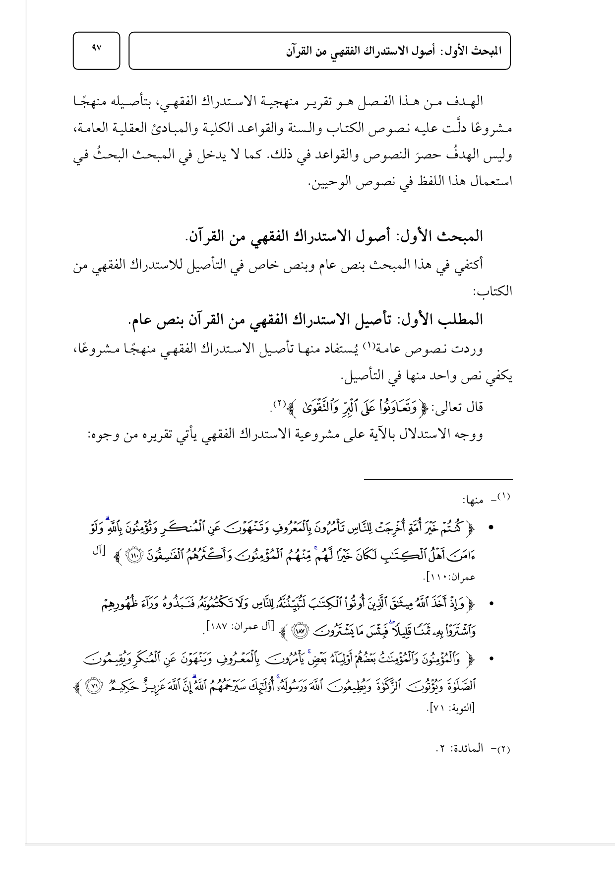 المبحث الأول: أصول الاستدراك الفقهي من الكتاب.