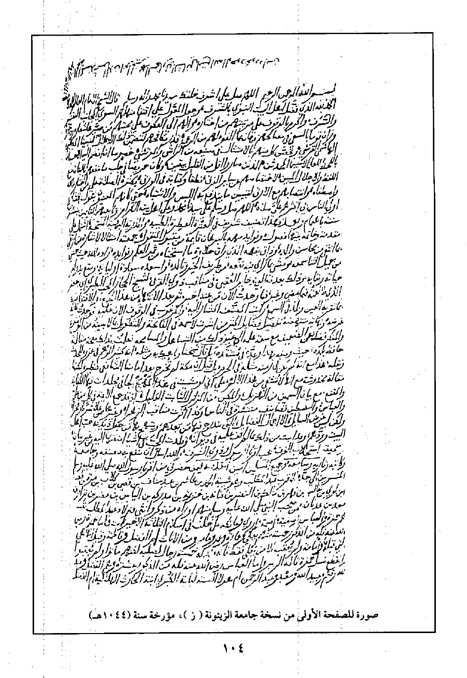 صورة للصفحة الأولى من نسخة جامعة الزيتونة (ز)، مؤرخة سنة (١٠٤٤ هـ)