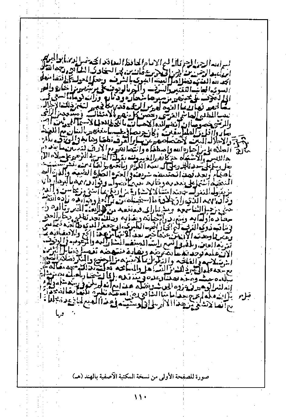 صورة للصفحة الأولى من نسخة المكتبة الآصفية بالهند (هـ)