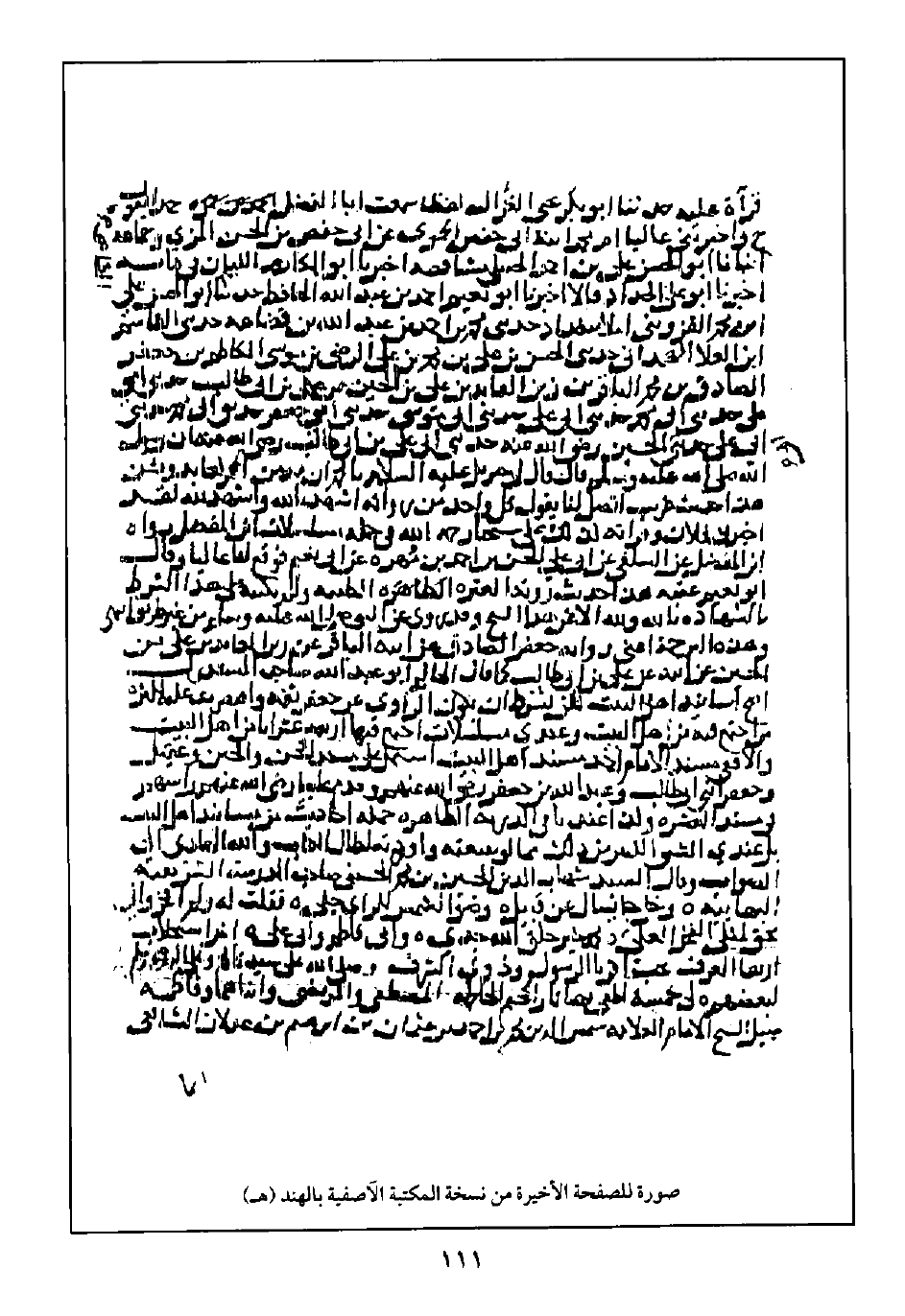 صورة للصفحة الأخيرة من نسخة المكتبة الآصفية بالهند (هـ)