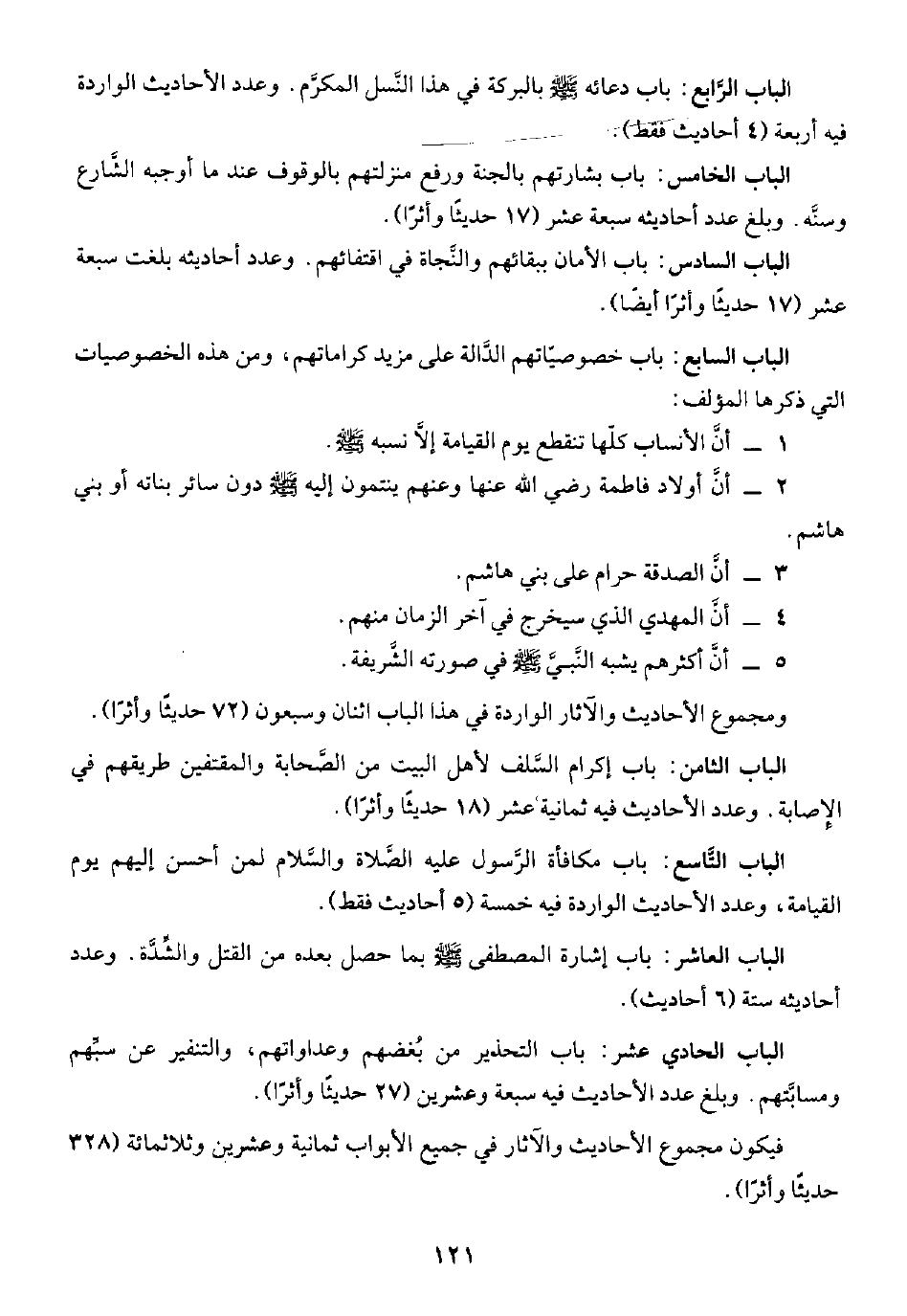 الباب السابع: باب خصوصياتهم الدَّالة على مزيد كراماتهم، ومن هذه الخصوصيات التي ذكرها المؤلف: