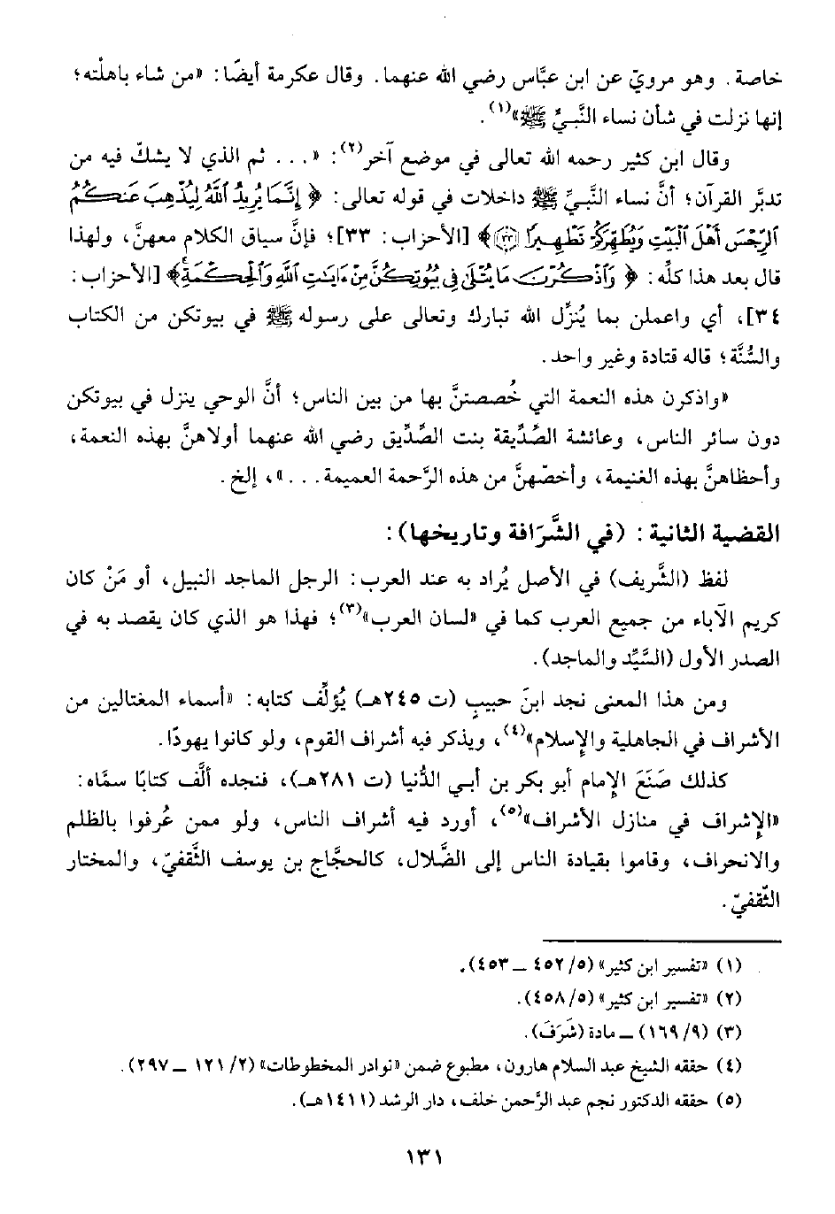 القضية الثانية: (في الشَّرَافة وتاريخها):