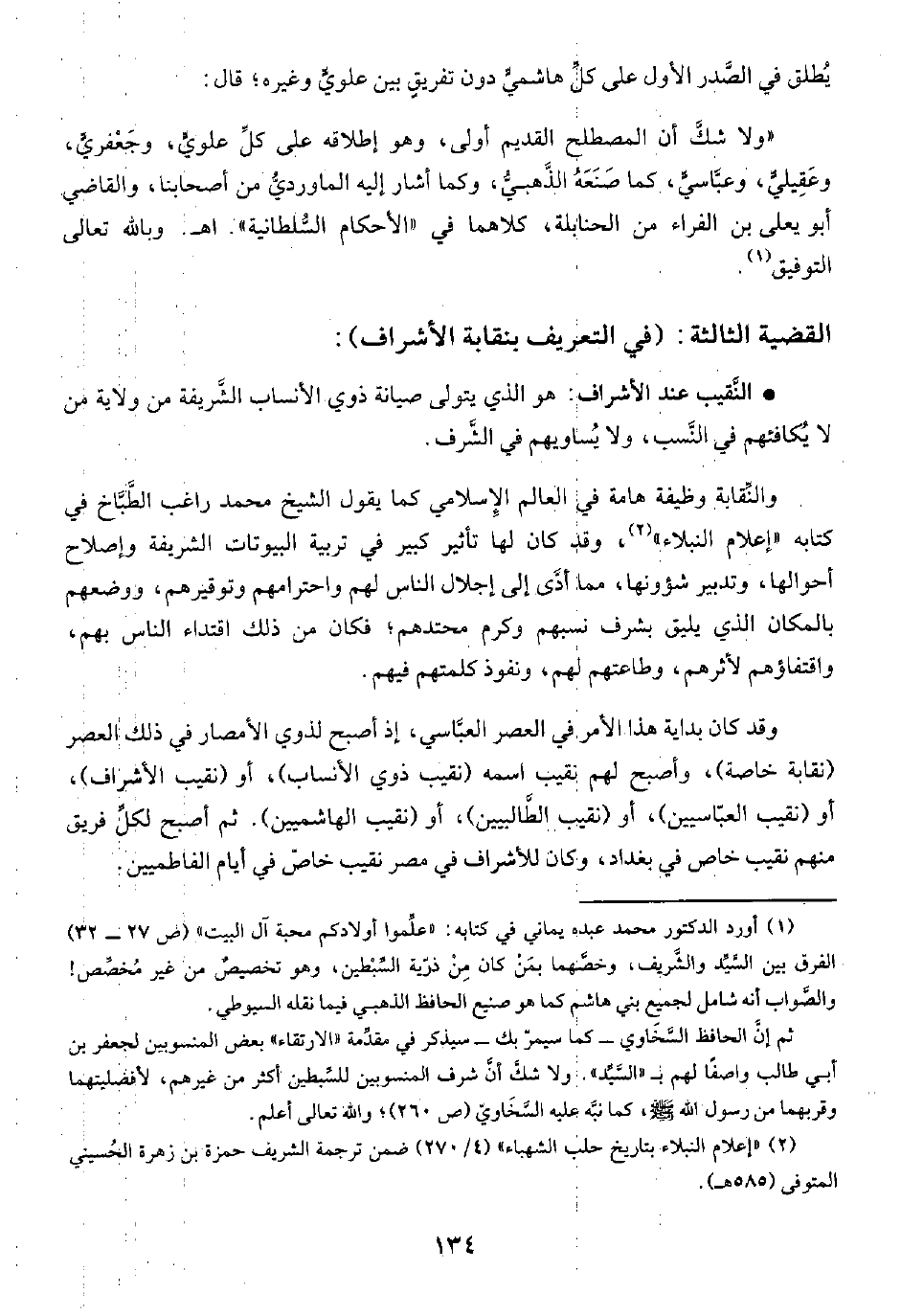 القضية الثالثة: (في التعريف بنقابة الأشراف):