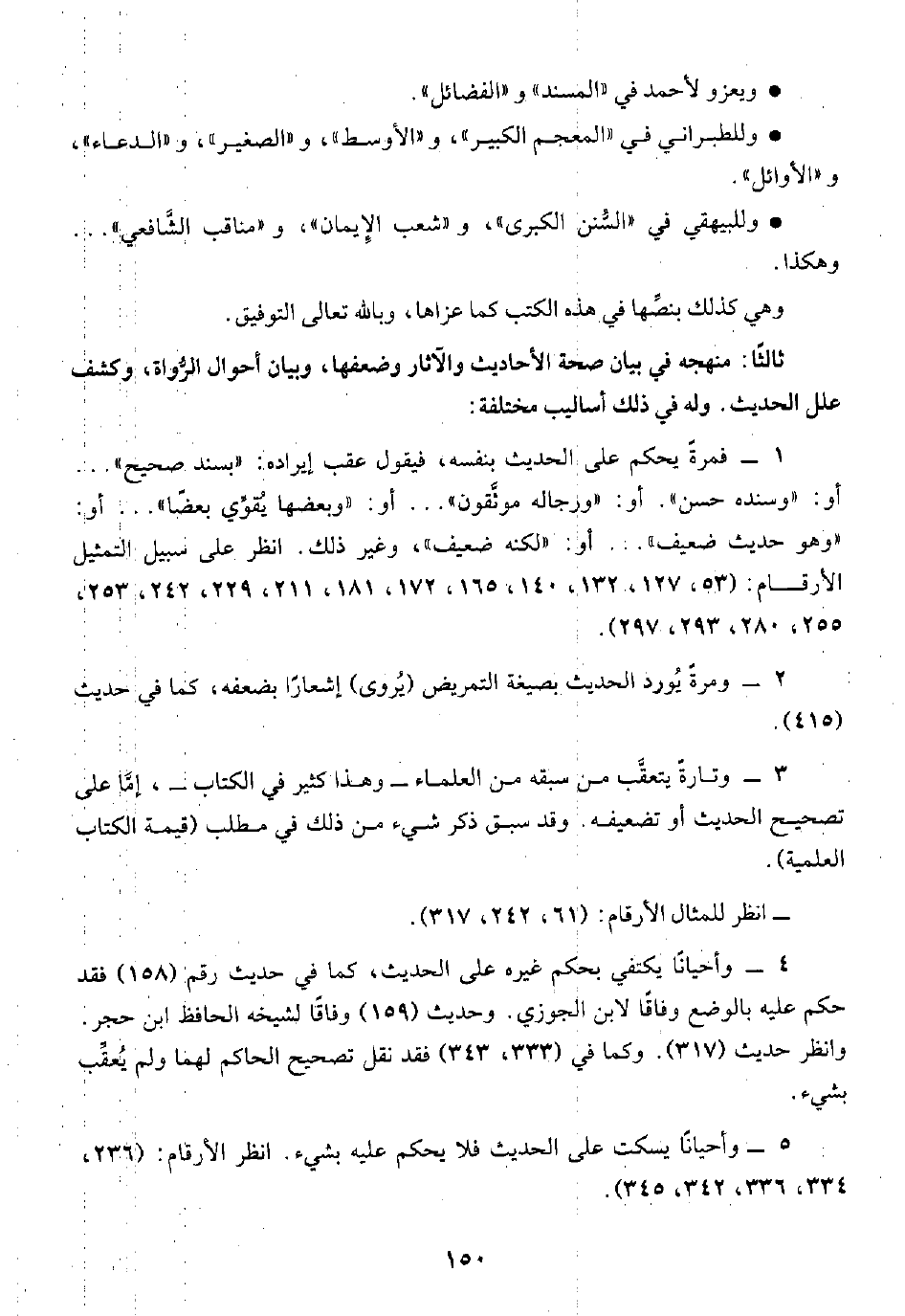 ثالثًا: منهجه في بيان صحة الأحاديث والآثار وضعفها، وبيان أحوال الرُّواة، وكشف علل الحديث. وله في ذلك أساليب مختلفة: