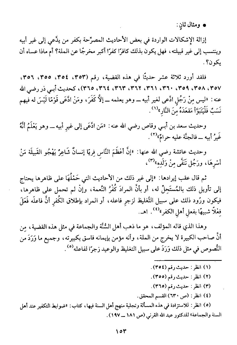 (¬٥) انظر: للاستزادة في هذه المسألة وتجلية منهج أهل السنة فيها، كتاب: "ضوابط التكفير عند أهل السنة والجماعة" للدكتور عبد الله القرني (ص ١٨١ - ١٩٧).