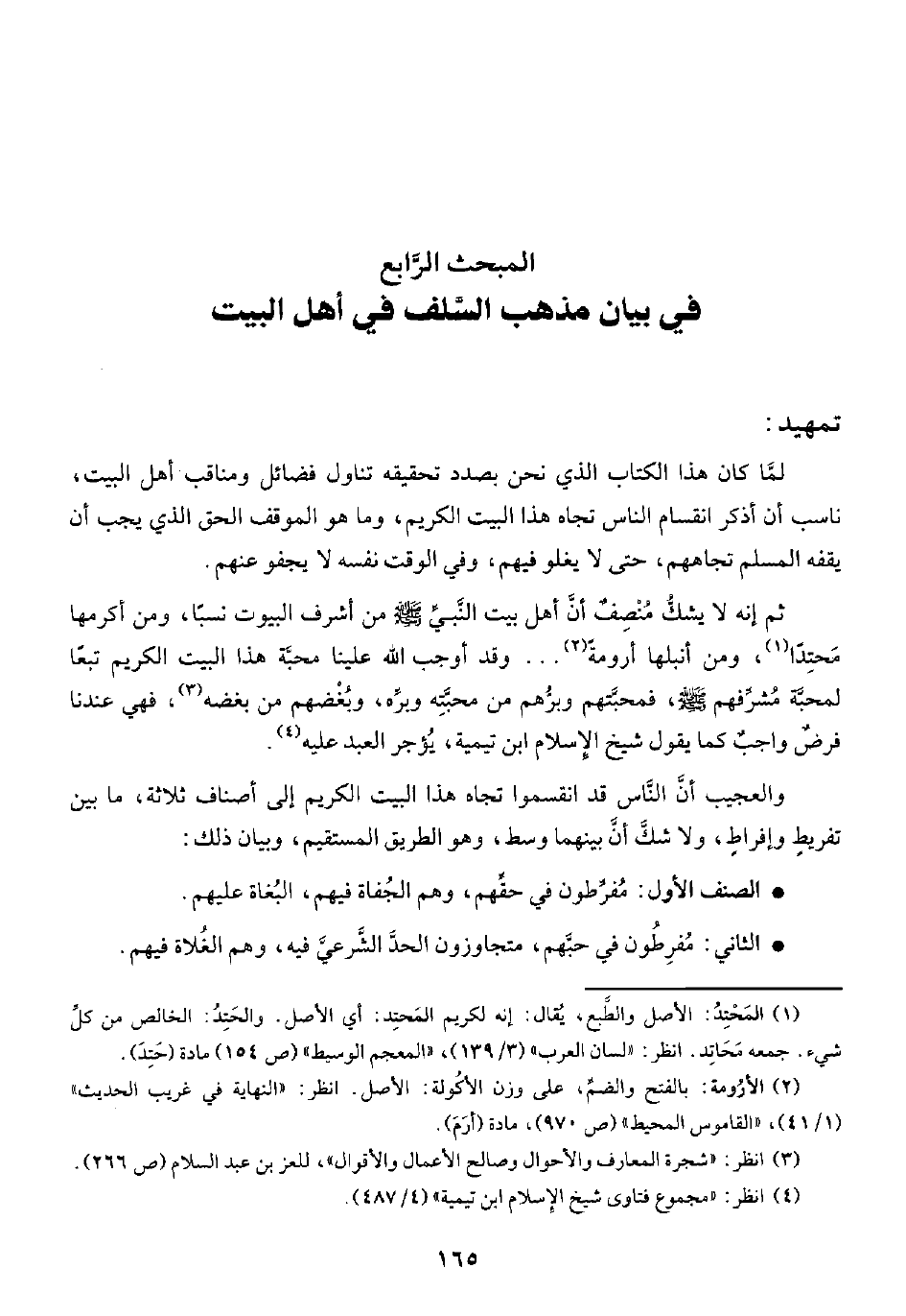 المبحث الرَّابع في بيان مذهب السَّلف في أهل البيت