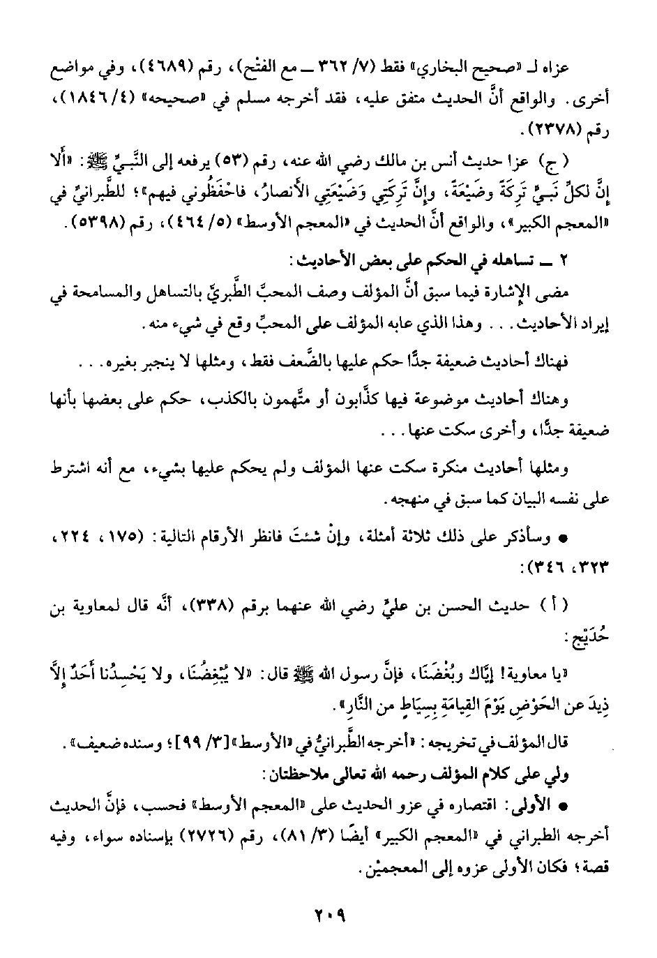 (أ) حديث الحسن بن عليٍّ رضي الله عنهما برقم (٣٣٨)، أنَّه قال لمعاوية بن حُدَيْج: