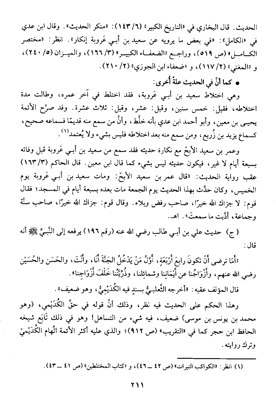 (ج) حديث علي بن أبي طالب رضي الله عنه (رقم ١٩٦) يرفعه إلى النَّبيِّ -صلى الله عليه وسلم- أنه قال: