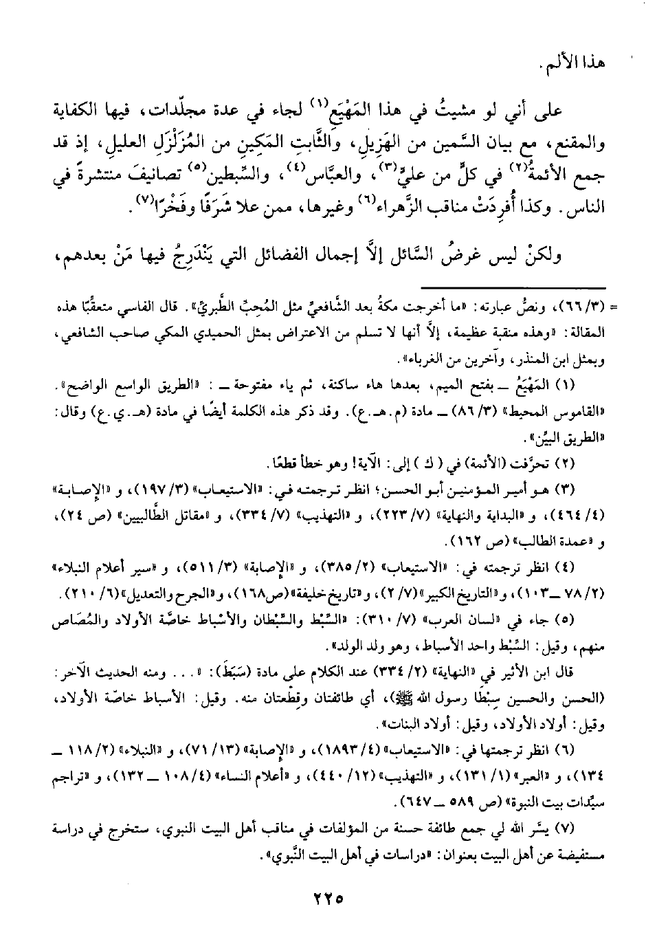 (¬٧) يسَّر الله لي جمع طائفة حسنة من المؤلفات في مناقب أهل البيت النبوي، ستخرج في دراسة مستفيضة عن أهل البيت بعنوان: "دراسات في أهل البيت النَّبوي".