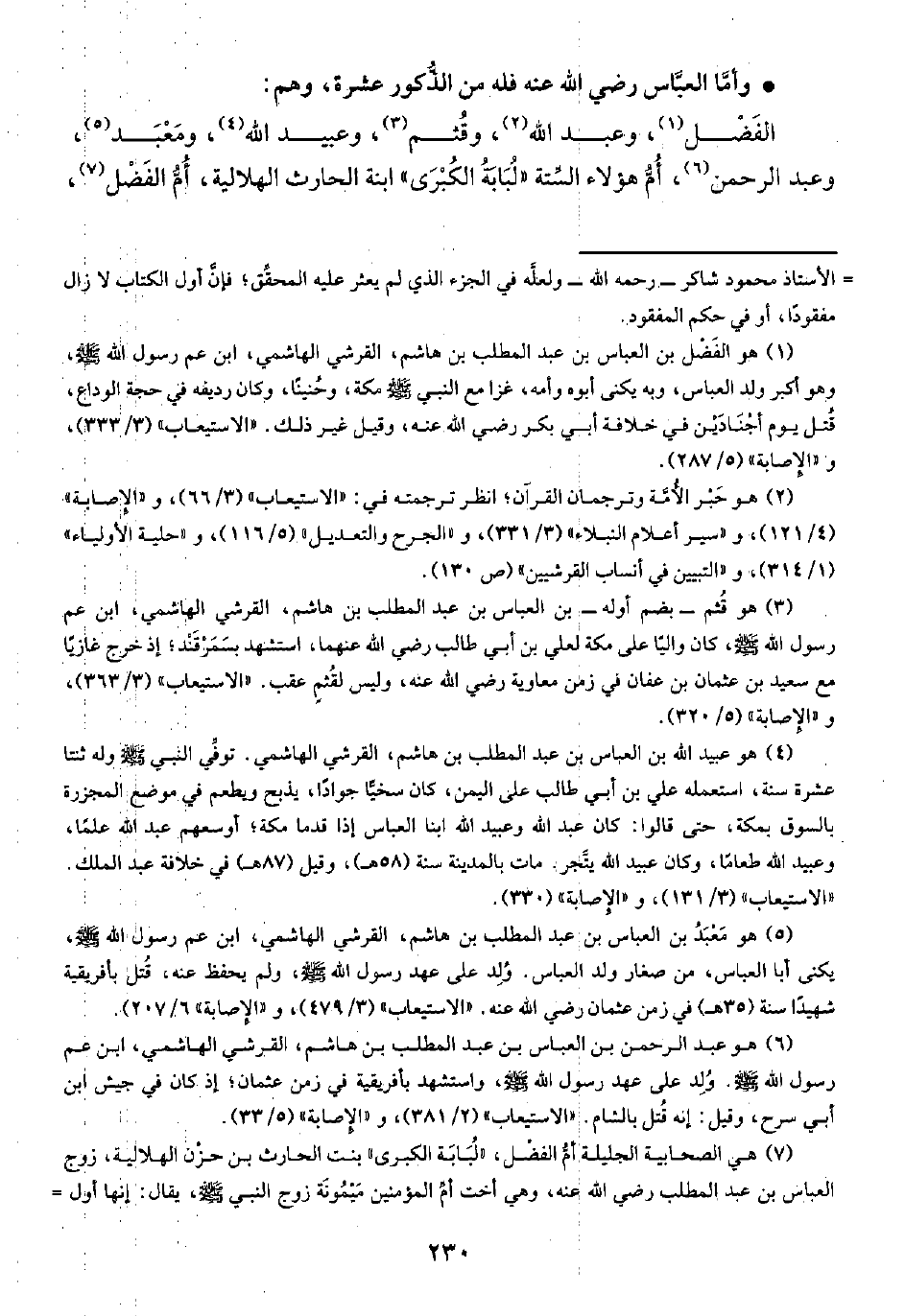 (¬٦) هو عبد الرحمن بن العباس بن عبد المطلب بن هاشم، القرشي الهاشمي، ابن عم رسول الله -صلى الله عليه وسلم-. وُلِد على عهد رسول الله -صلى الله عليه وسلم-، واستشهد بأفريقية في زمن عثمان؛ إذ كان في جيش ابن أبي سرح، وقيل: إنه قُتل بالشام. "الاستيعاب" (٢/ ٣٨١)، و"الإصابة" (٥/ ٣٣).