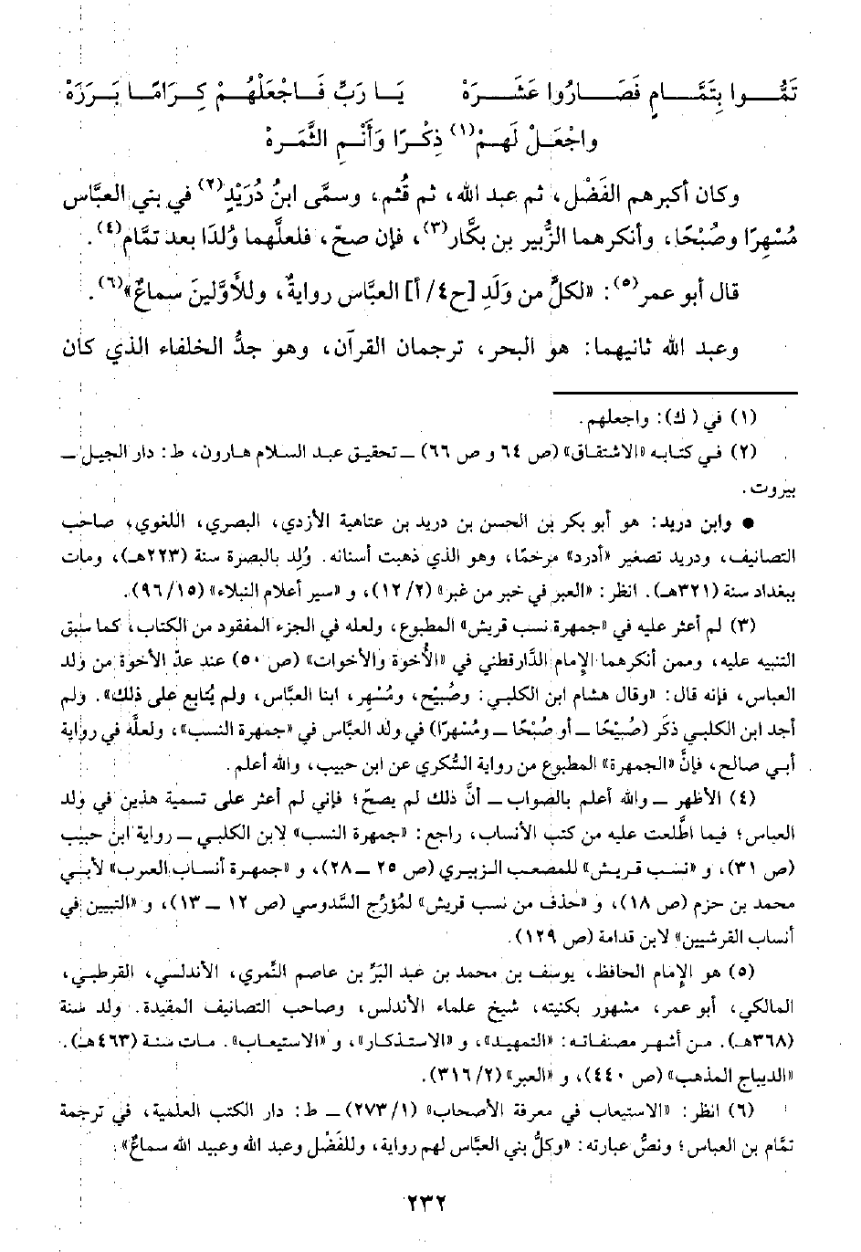 (¬٦) انظر: "الاستيعاب في معرفة الأصحاب" (١/ ٢٧٣) - ط: دار الكتب العلمية، في ترجمة تمَّام بن العباس؛ ونصُّ عبارته: "وكلُّ بني العبَّاس لهم رواية، وللفَضْل وعبد الله وعبيد الله سماعٌ".