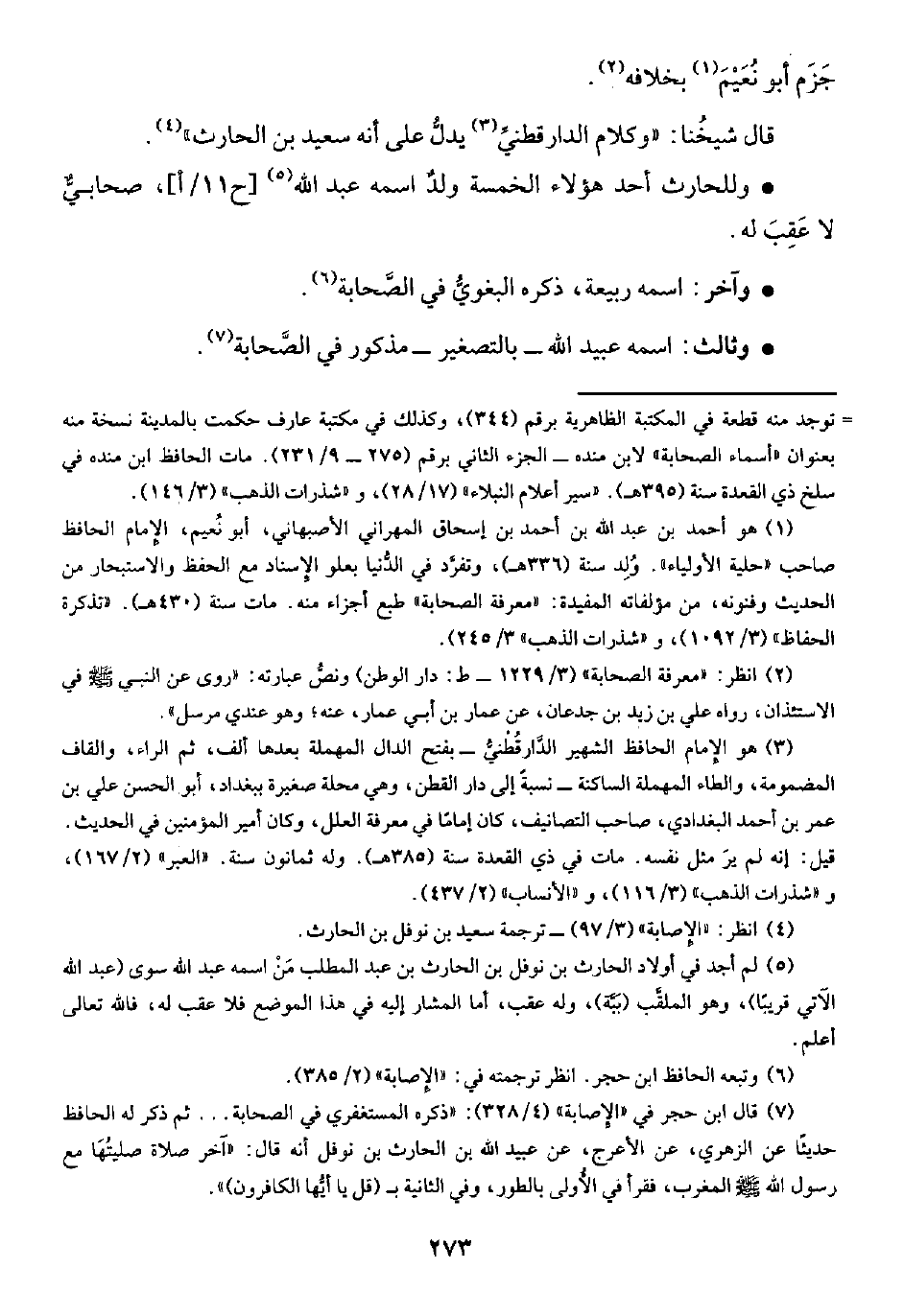 • وللحارث أحد هؤلاء الخمسة ولدٌ اسمه عبد الله (¬٥) [ح ١١/ أ]، صحابيٌّ لا عَقِبَ له.