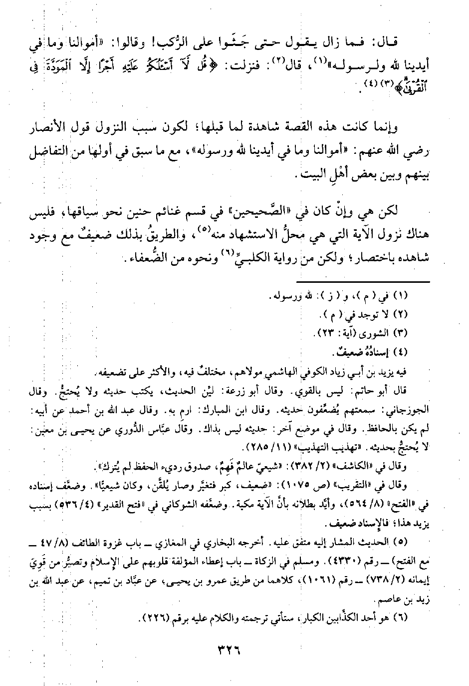 لكن هي وإنْ كان في "الصَّحيحين" في قسم غنائم حنين نحو سياقها، فليس هناك نزول الآية التي هي محلُّ الاستشهاد منه (¬٥)، والطريقُ بذلك ضعيفٌ مع وجود شاهده باختصار؛ ولكن من رواية الكلبيِّ (¬٦) ونحوه من الضُّعفاء.