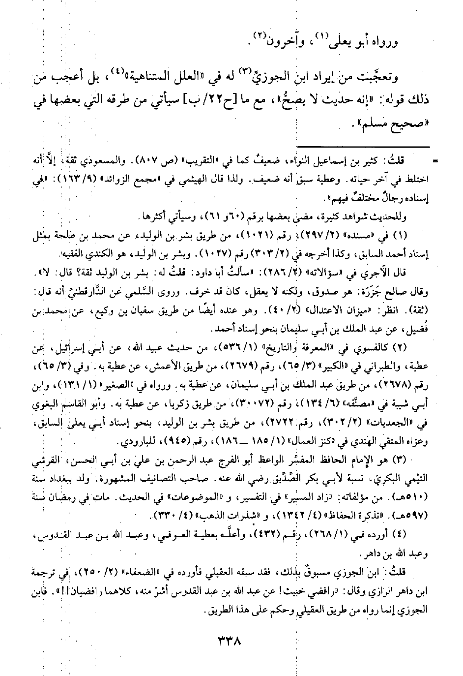 (¬٤) أورده في (١/ ٢٦٨)، رقم (٤٣٢)، وأعلَّه بعطية العوفي، وعبد الله بن عبد القدوس, وعبد الله بن داهر.