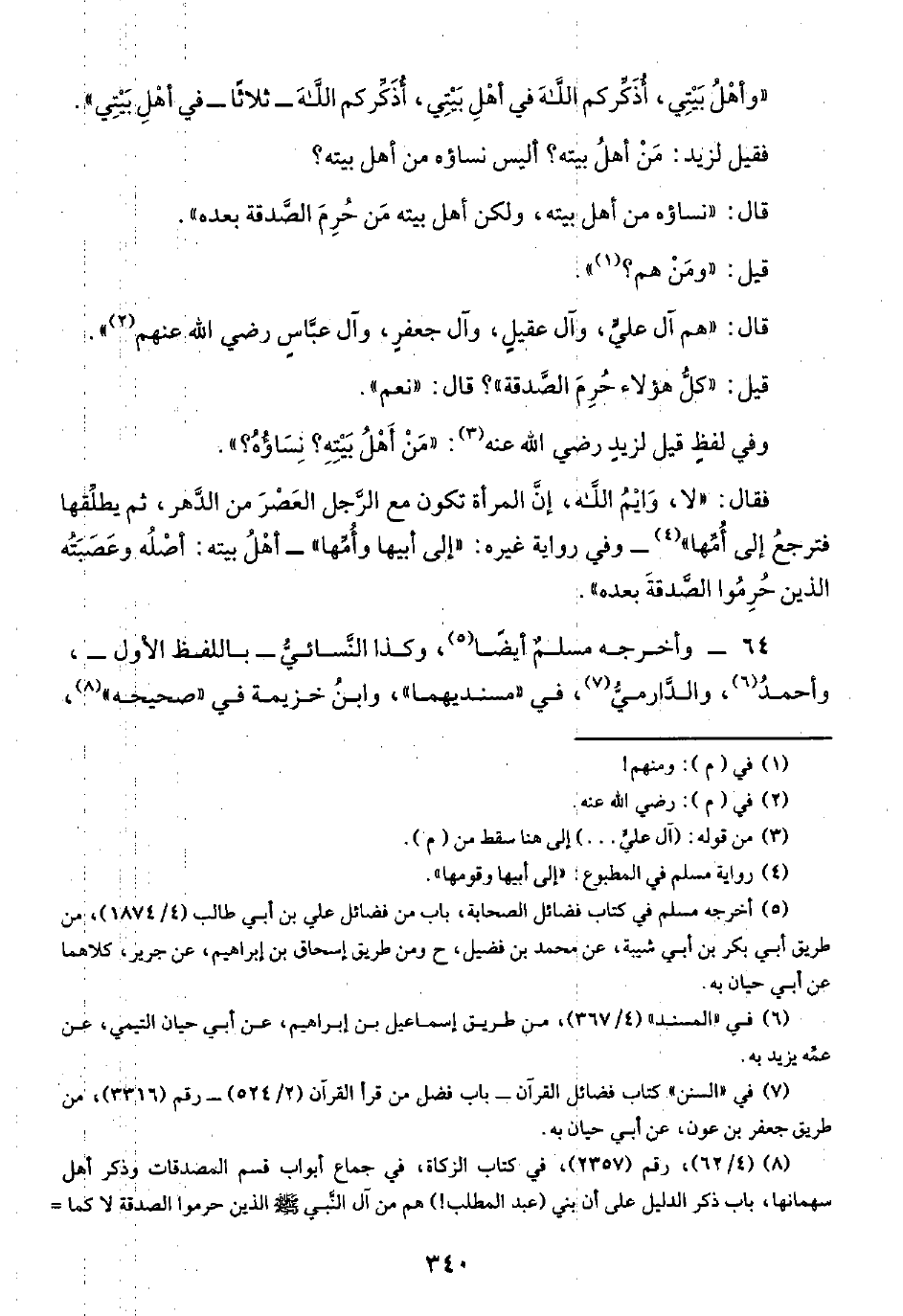 وفي لفظٍ قيل لزيدٍ رضي الله عنه (¬٣): "مَنْ أَهْلُ بَيْتِهِ؟ نِسَاؤُهُ؟ ".