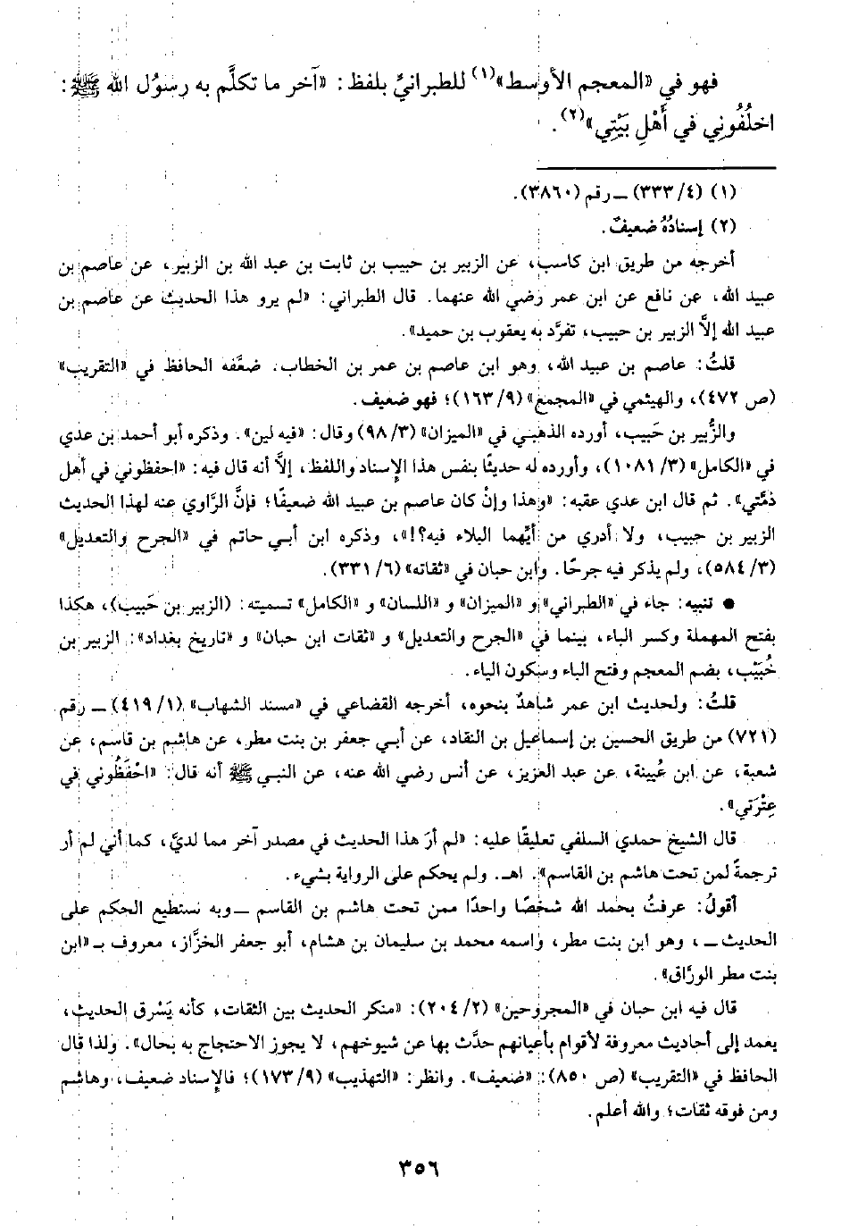 • تنبيه: جاء في "الطبراني" و "الميزان" و "اللسان" و "الكامل" تسميته: (الزبير بن حَبيب)، هكذا بفتح المهملة وكسر الباء، بينما في "الجرح والتعديل" و "ثقات ابن حبان" و "تاريخ بغداد": الزبير بن خُبَيب، بضم المعجم وفتح الباء وسكون الياء.
