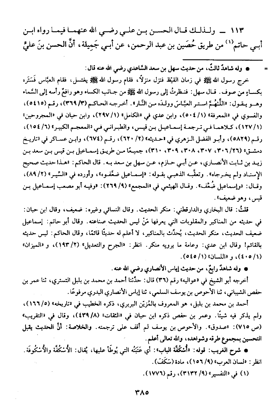 ١١٣ - ولذلك قال الحسن بن علي رضي الله عنهما فيما رواه ابن أبي حاتم (¬١) من طريق حُصَين بن عبد الرحمن، عن أبي جَمِيلة، أن الحسن بنَ عليٍّ