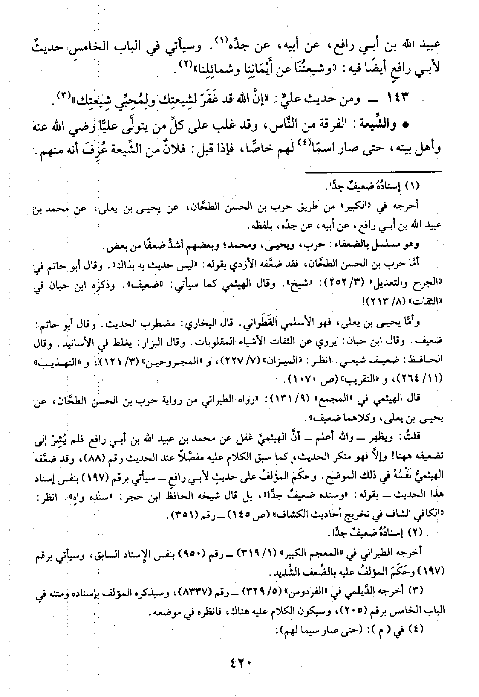 عبيد الله بن أبي رافع، عن أبيه، عن جدِّه (¬١). وسيأتي في الباب الخامسِ حديثٌ لأبي رافعٍ أيضًا فيه: "وشيعتُنَا عن أَيْمَانِنِا وشمائِلِنا" (¬٢).