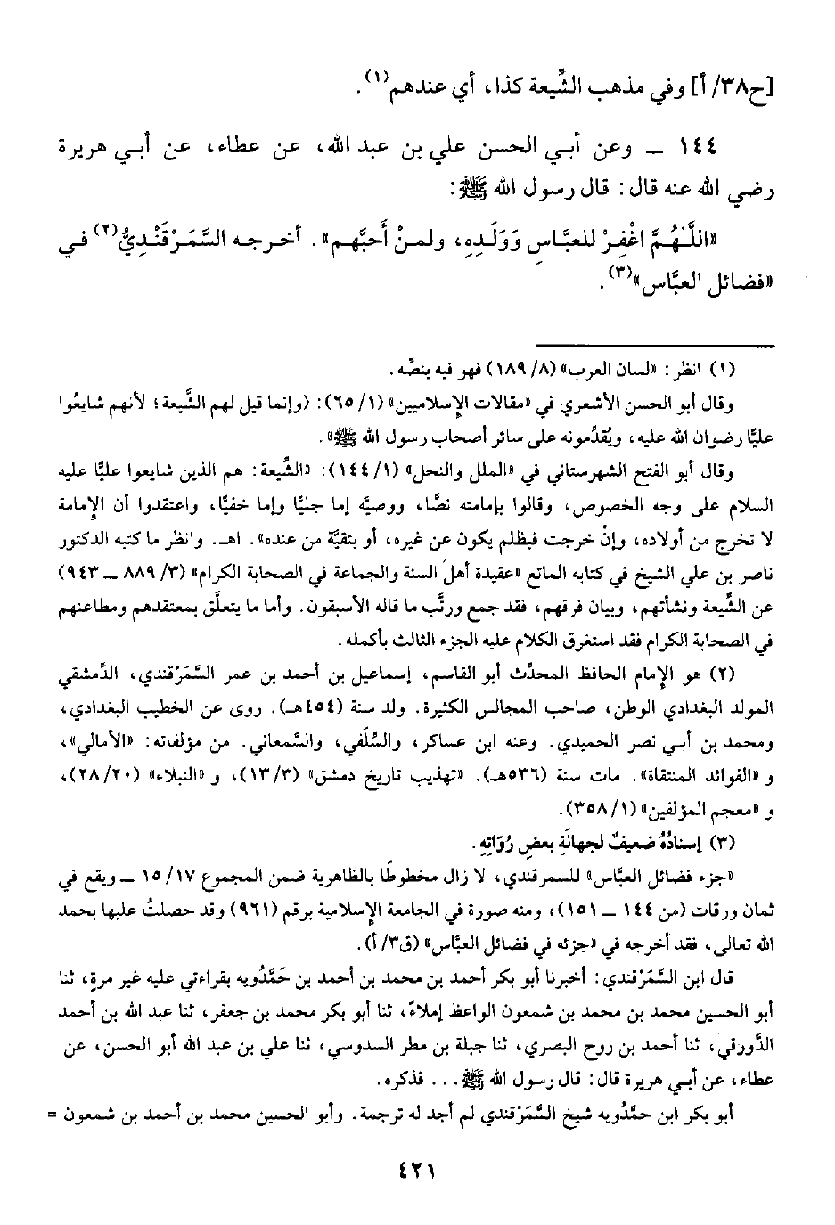 (¬٣) إسنادُهُ ضعيفٌ لجهالَةِ بعضِ رُوَاتِهِ.