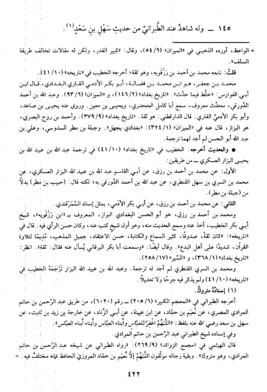 ١٤٥ - وله شاهدٌ عبد الطَّبرانيِّ من حديثِ سَهْلِ بنِ سَعْدٍ (¬١).