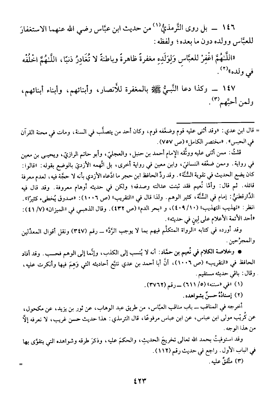 ١٤٦ - بل روى التَّرمذيُّ (¬١) من حديث ابن عبَّاس -رضي الله عنهما- الاستغفارَ للعبَّاس وولده دون ما بعده؛ ولفظه: