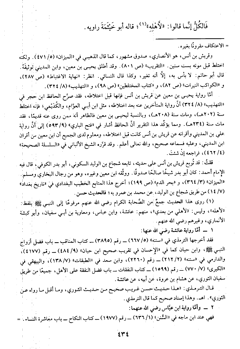 (¬١) روى هذا الحديث جمعٌ من الصَّحابة الكرام -رضي الله عنهم- مرفوعًا إلى النبي -صلى الله عليه وسلم- بلفظ: "لأهله"، وليس: "لأهلي من بعدي"، منهم: عائشة، وابن عباس، ومعاوية بن أبي سفيان، وأبو كبشة الأنماري، وغيرهم -رضي الله عنهم-.