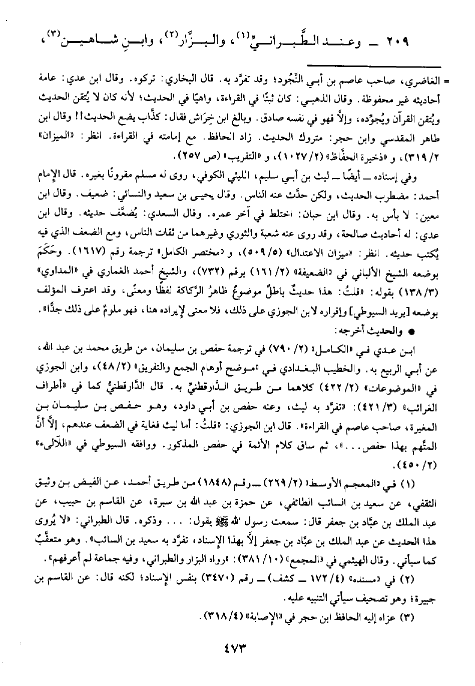 ٢٠٩ - وعند الطَّبرانيِّ (¬١)، والبزَّار (¬٢)، وابنِ شاهين (¬٣)،