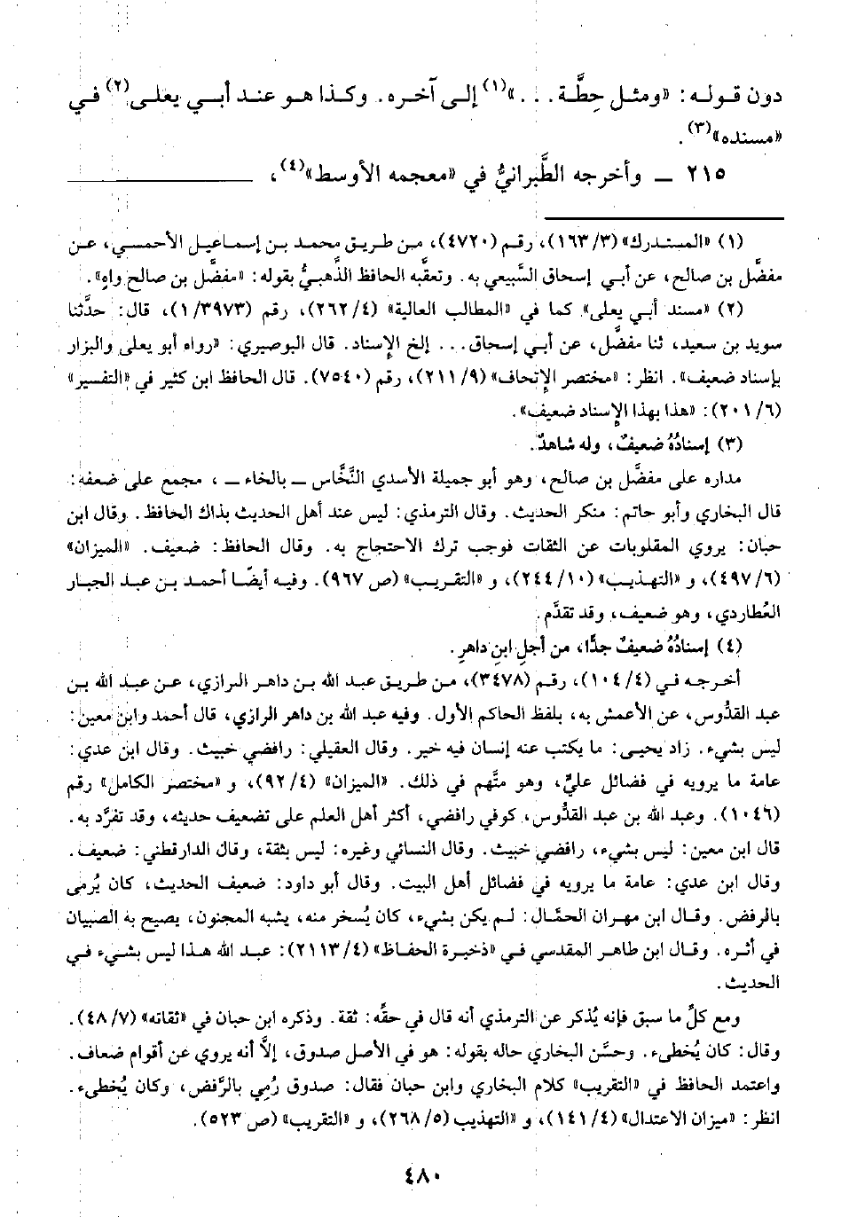 (¬١) "المستدرك" (٣/ ١٦٣)، رقم (٤٧٢٠)، من طريق محمد بن إسماعيل الأحمسي، عن مفضَّل بن صالح، عن أبي إسحاق السَّبيعي له. وتعقَّبه الحافظ الذَّهبيُّ بقوله: "مفضَّل بن صالح واهٍ".