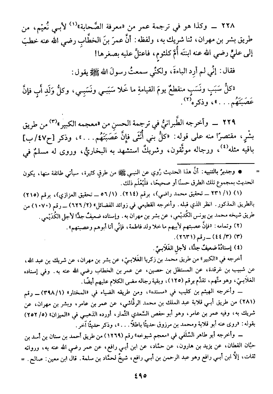 ٢٢٩ - وأخرجه الطَّبرانيُّ في ترجمة الحسنِ من "معجمه الكبير" (¬٣) من طريق بشْرٍ، مقتصرًا منه على قوله: "كلُّ بني أُنْثَى فإِنَّ عَصَبَتَهُم ... " وذكر باقيه مثله (¬٤)، ورجاله موثَّقون، وشريكٌ استشهد به البخاريُّ، وروى له مسلمٌ في