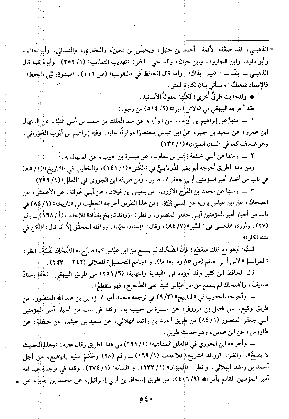 ٣ - ومنها عن محمد بن الفرج الأزرق، عن يحيى بن غيلان، عن أبي عَوانة، عن الأعمش، عن الضحاك، عن ابن عباس يرويه عن النبي -صلى الله عليه وسلم-. ومن هذا الطريق أخرجه الخطيب في "تاريخه" (١/ ٨٤) في باب من أخبار أمير المؤمين أبي جعفر المنصور، وانظر: "زوائد تاريخ بغداد" للأحدب (١/ ١٦٨) - رقم (٢٧). وأورده الذهبي في "السِّير" (٧/ ٨٤)، وقال: "إسناده جيِّد". ووافقه المحقق إلَّا أنه قال: "لكن في متنه نكارة".
