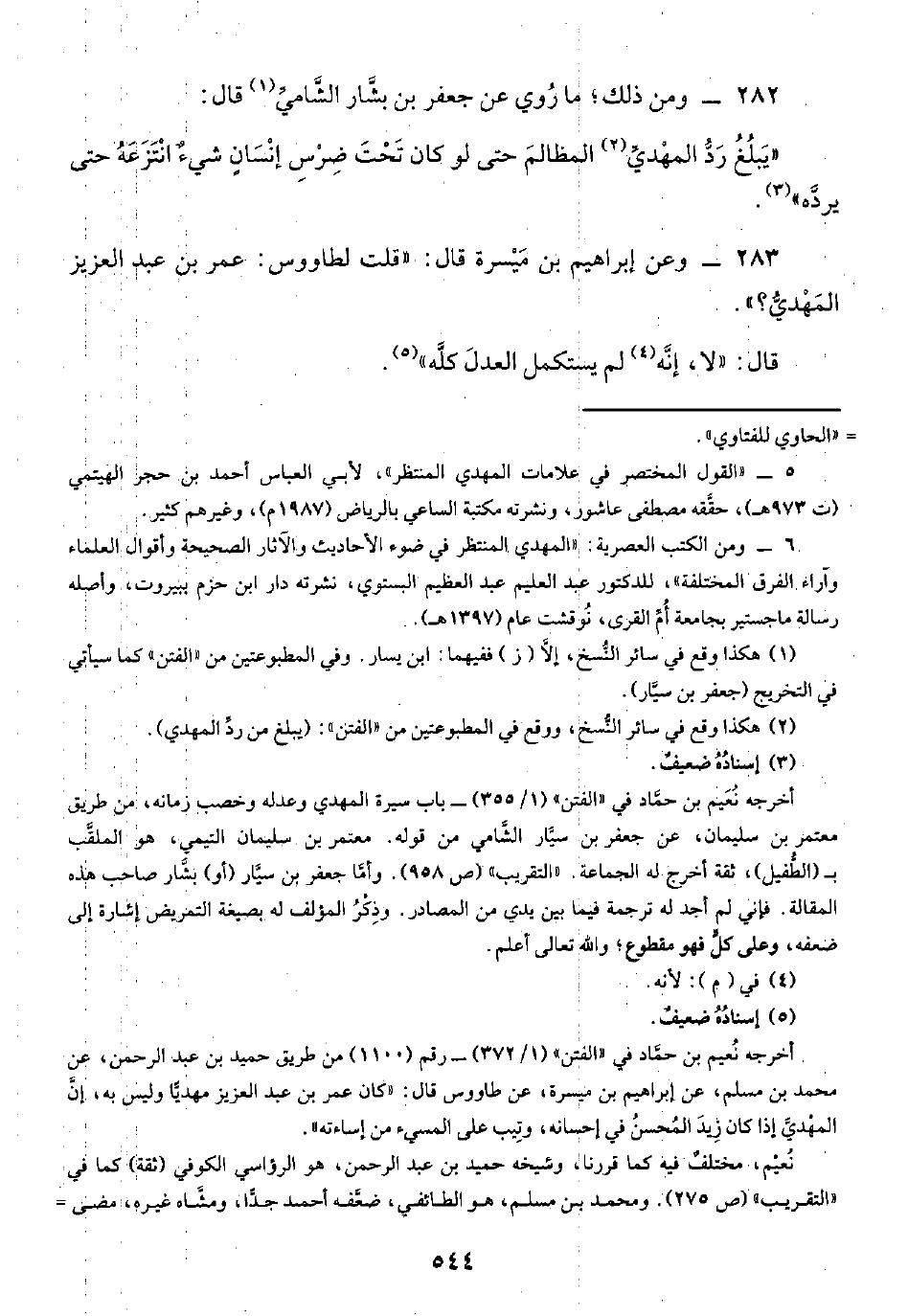 ٥ - "القول المختصر في علامات المهدي المنتظر"، لأبي العباس أحمد بن حجر الهيتمي (ت ٩٧٣ هـ)، حقَّقه مصطفى عاشور، ونشرته مكتبة الساعي بالرياض (١٩٨٧ م)، وغيرهم كثير.