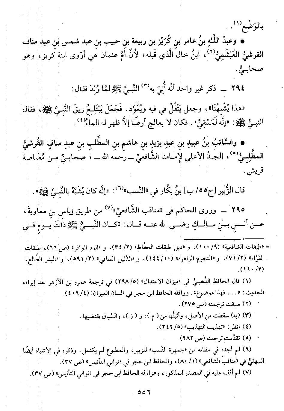 (¬٦) لم أجده في مظانه من "جمهرة النَّسب" للزبير، والمطبوع لم يكتمل. وذكره في الأشباه أيضًا البيهقيُّ في "مناقب الشافعي" (١/ ٨٠)، والحافظ ابن حجر في "توالي التأنيس" (ص ٣٧).