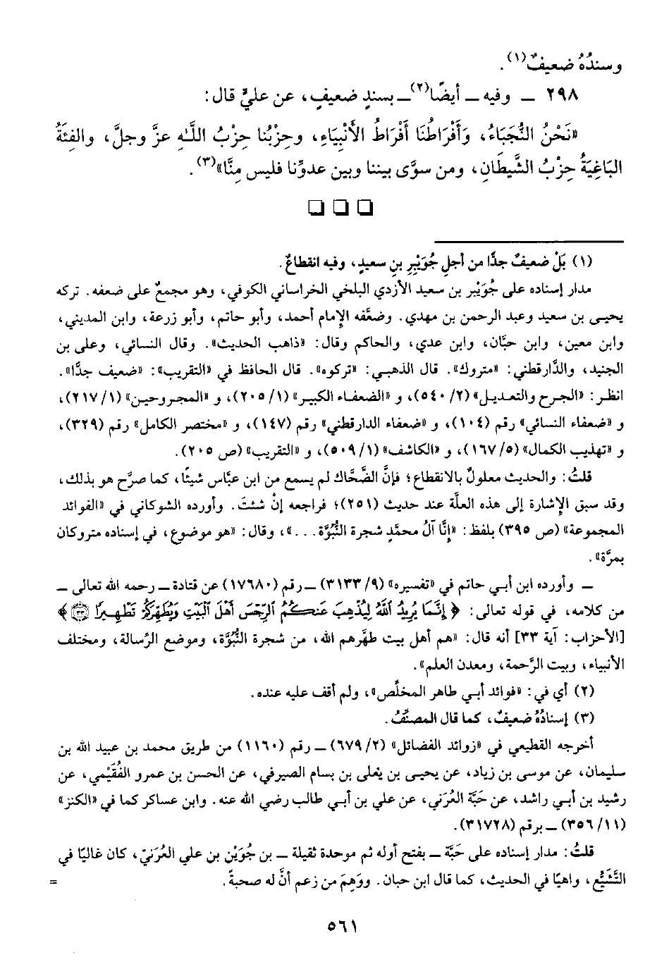 ٢٩٨ - وفيه -أيضًا (¬٢) - بسندٍ ضعيفٍ، عن عليٍّ قال: