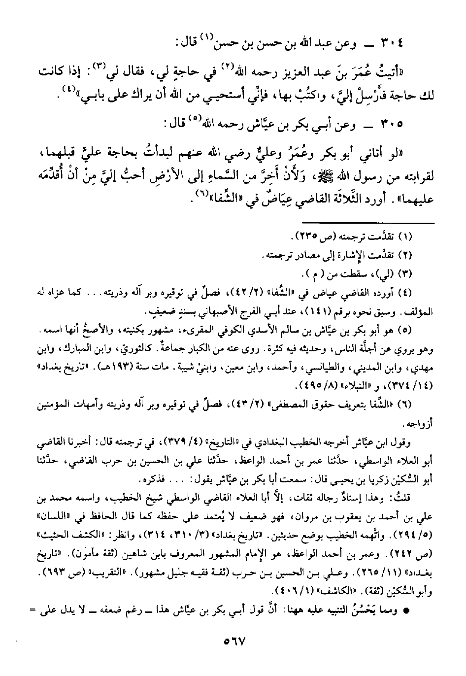 وقول ابن عيَّاش أخرجه الخطيب البغدادي في "التاريخ" (٤/ ٣٧٩)، في ترجمته قال: أخبرنا القاضي أبو العلاء الواسطي، حدَّثنا عمر بن أحمد الواعظ، حدَّثنا علي بن الحسين بن حرب القاضي، حدَّثنا أبو السُّكيْن زكريا بن يحيى قال: سمعت أبا بكر بن عيَّاش يقول: ... فذكره.