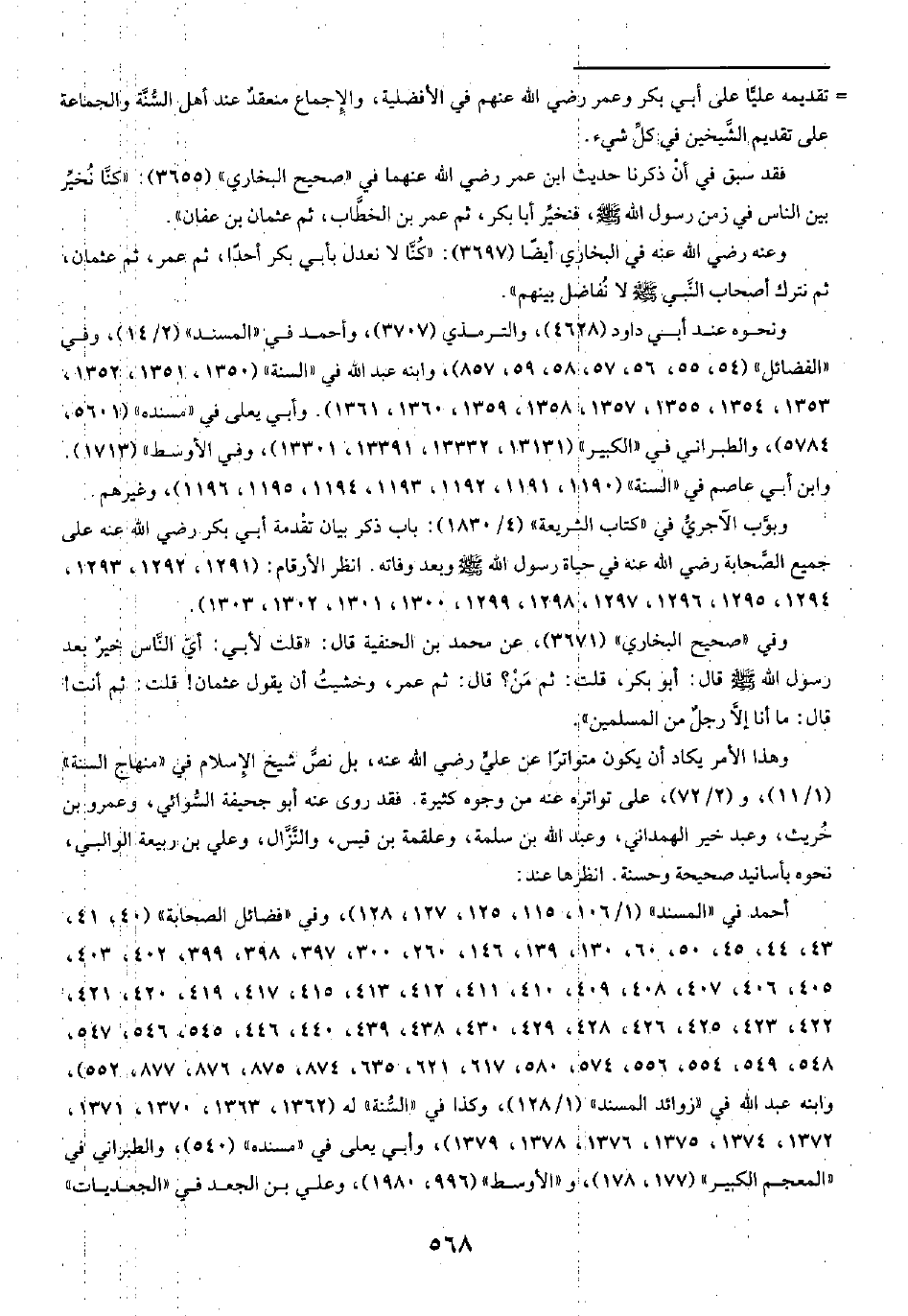 وبوَّب الآجريُّ في "كتاب الشريعة" (٤/ ١٨٣٠): باب ذكر بيان تقدمة أبي بكر رضي الله عنه على جميع الصَّحابة رضي الله عنه في حياة رسول الله -صلى الله عليه وسلم- وبعد وفاته. انظر الأرقام: (١٢٩١، ١٢٩٢، ١٢٩٣، ١٢٩٤، ١٢٩٥، ١٢٩٦، ١٢٩٧، ١٢٩٨، ١٢٩٩، ١٣٠٠، ١٣٠١، ١٣٠٢، ١٣٠٣).