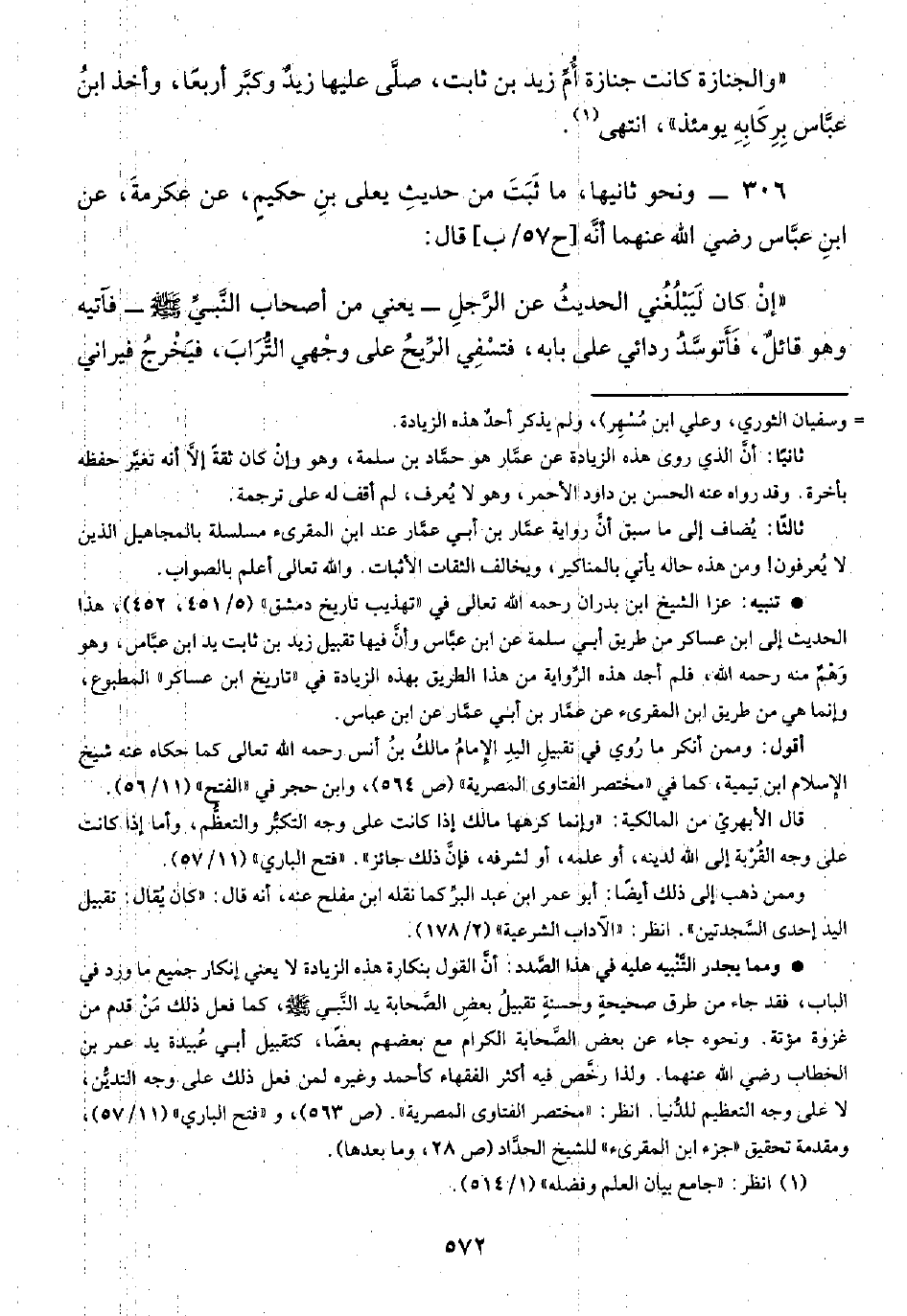 • ومما يجدر التَّنْبيه عليه في هذا الصَّدد: أن القول بنكارة هذه الزيادة لا يعني إنكار جميع ما ورد في الباب، فقد جاء من طرق صحيحةٍ وحسنةٍ تقبيلُ بعضِ الصَّحابة يد النَّبي -صلى الله عليه وسلم-، كما فعل ذلك مَنْ قدم من غزوة مؤتة. ونحوه جاء عن بعض الصَّحابة الكرام مع بعضهم بعضًا، كتقبيل أبي عُبيدة يد عمر بن الخطاب رضي الله عنهما. ولذا رخَّص فيه أكثر الفقهاء كأحمد وغيره لمن فعل ذلك على وجه التديُّن، لا على وجه التعظيم للدُّنيا. انظر: "مختصر الفتاوى المصرية". (ص ٥٦٣)، و"فتح الباري" (١١/ ٥٧)، ومقدمة تحقيق "جزء ابن المقرئ" للشيخ الحدَّاد (ص ٢٨) وما بعدها).