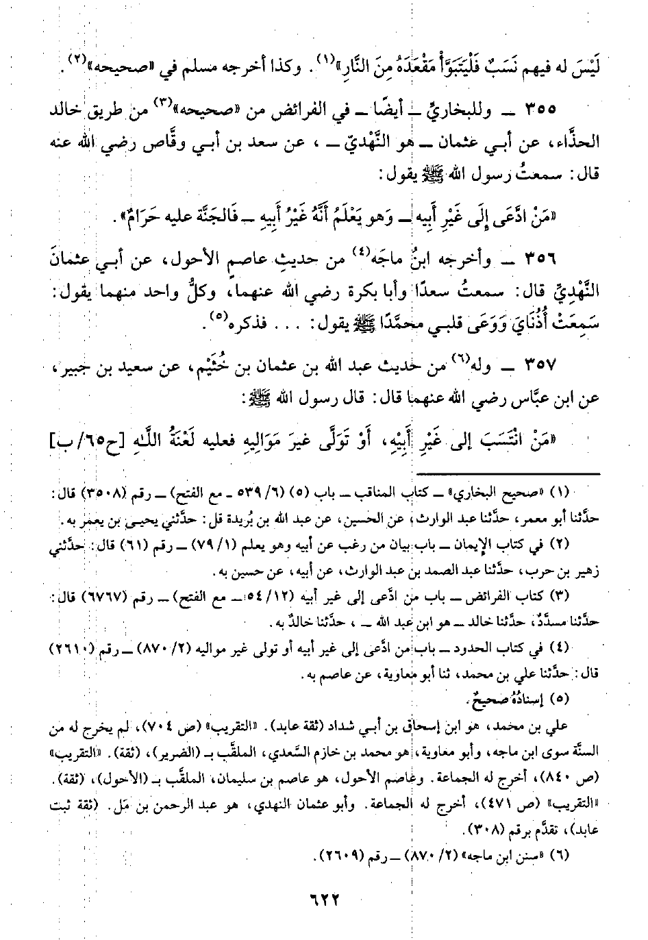 (¬٤) في كتاب الحدود -باب من ادَّعى إلى غير أبيه أو تولى غير مواليه (٢/ ٨٧٠) - رقم (٢٦١٠) قال: حدَّثنا علي بن محمد، ثنا أبو معاوية، عن عاصم به.