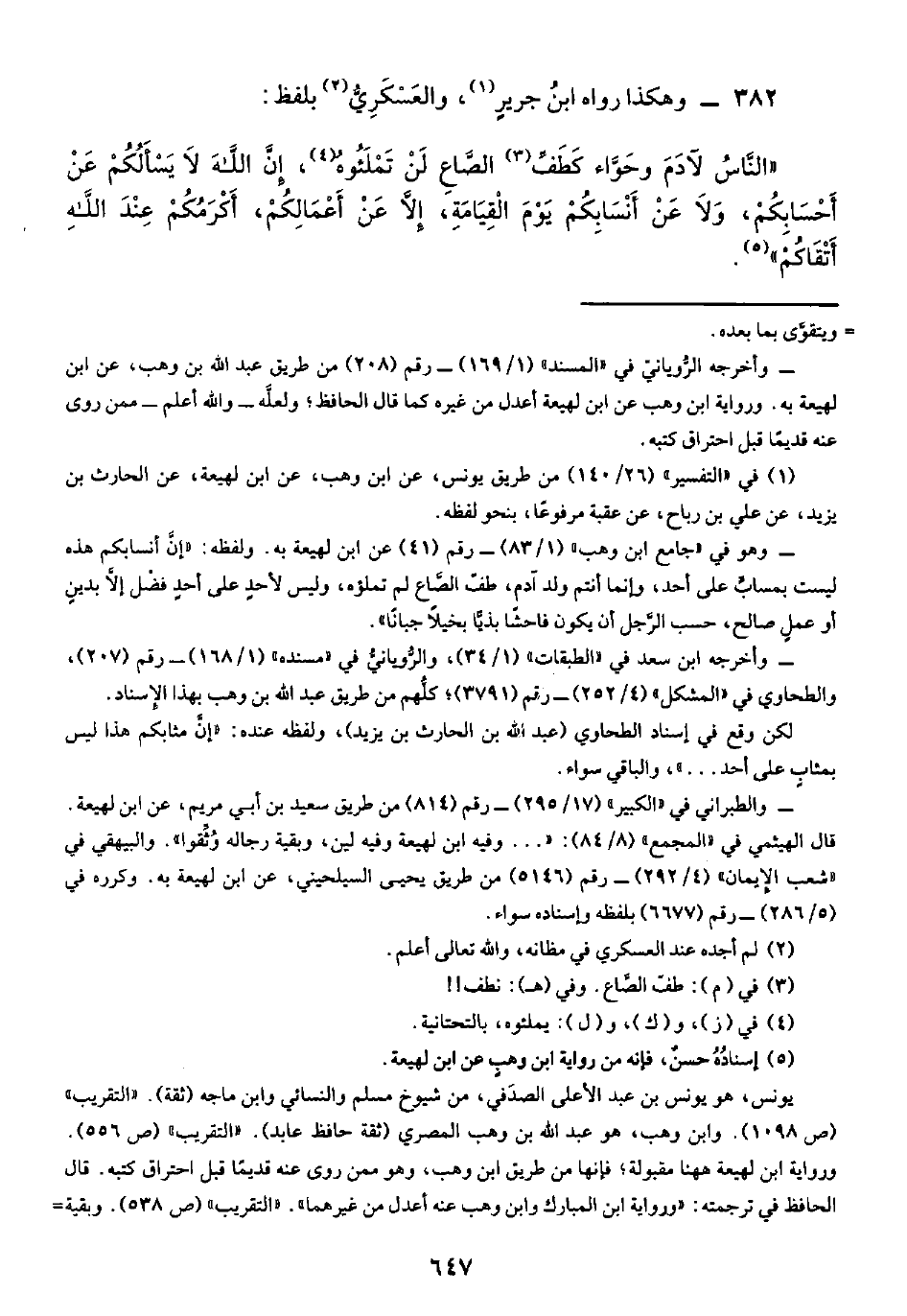 ٣٨٢ - وهكذا رواه ابنُ جرير (¬١)، والعَسْكَرِيُّ (¬٢) بلفظ: