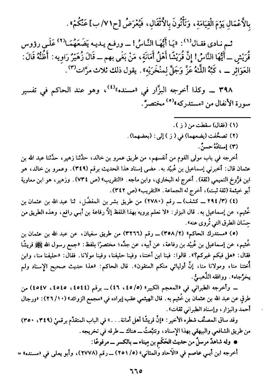 ٣٩٨ - وكذا أخرجه البزَّار في "مسنده" (¬٤) , وهو عند الحاكم في تفسير سورة الأنفال من "مستدركه" (¬٥) مختصرٌ.