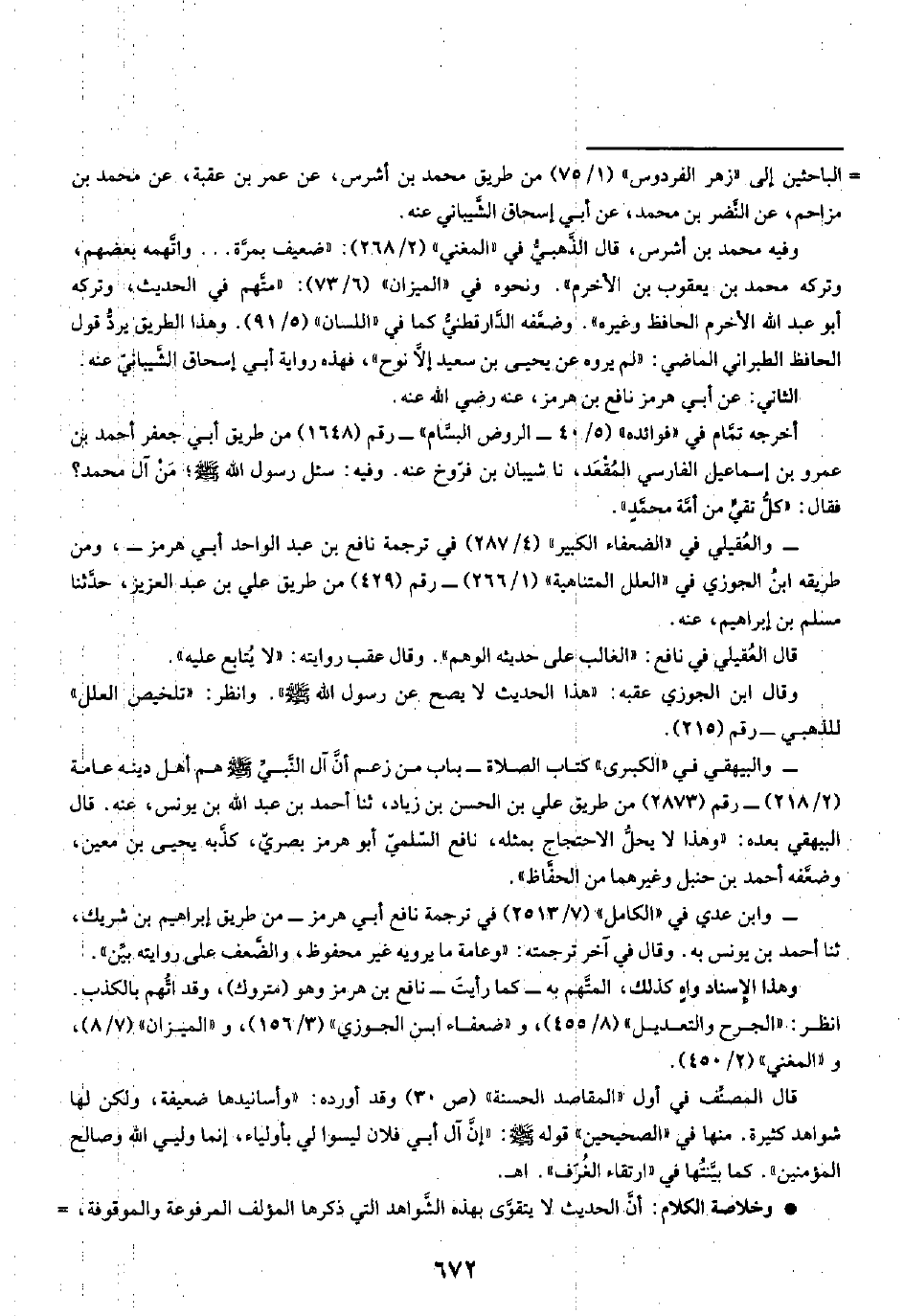 - والبيهقي في "الكبرى" كتاب الصلاة - باب من زعم أن آل النَّبيِّ -صلى الله عليه وسلم- هم أهل دينه عامة (٢/ ٢١٨) - رقم (٢٨٧٣) من طريق علي بن الحسن بن زياد، ثنا أحمد بن عبد الله بن يونس، عنه. قال البيهقي بعده: "وهذا لا يحلُّ الاحتجاج بمثله، نافع السّلميّ أبو هرمز بصريّ، كذَّبه يحيى بن معين، وضعَّفه أحمد بن حنبل وغيرهما من الحفَّاظ".