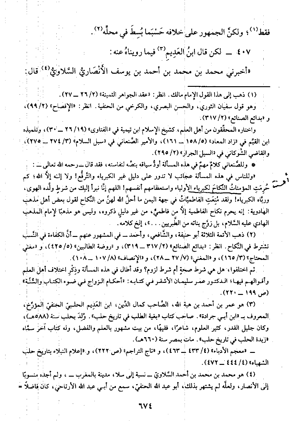 (¬٣) هو عمر بن أحمد بن هبة الله، الصَّاحب كمال الدَّين، ابن العَدِيم الحلبيّ الحنفيّ المؤرِّخ، المعروف بـ "ابن أبي جرادة". صاحب كتاب "بغية الطلب في تاريخ حلب"، وُلِدَ بحلب سنة (٥٨٨ هـ)، وكان جليل القدر، كثير العلوم، شاعرًا، فقيهًا، من بيت مشهور بالعلم والفضل, وله كتاب آخر سمَّاه "زبدة الحلب في تاريخ حلب". مات بمصر سنة (٦٦٠ هـ).