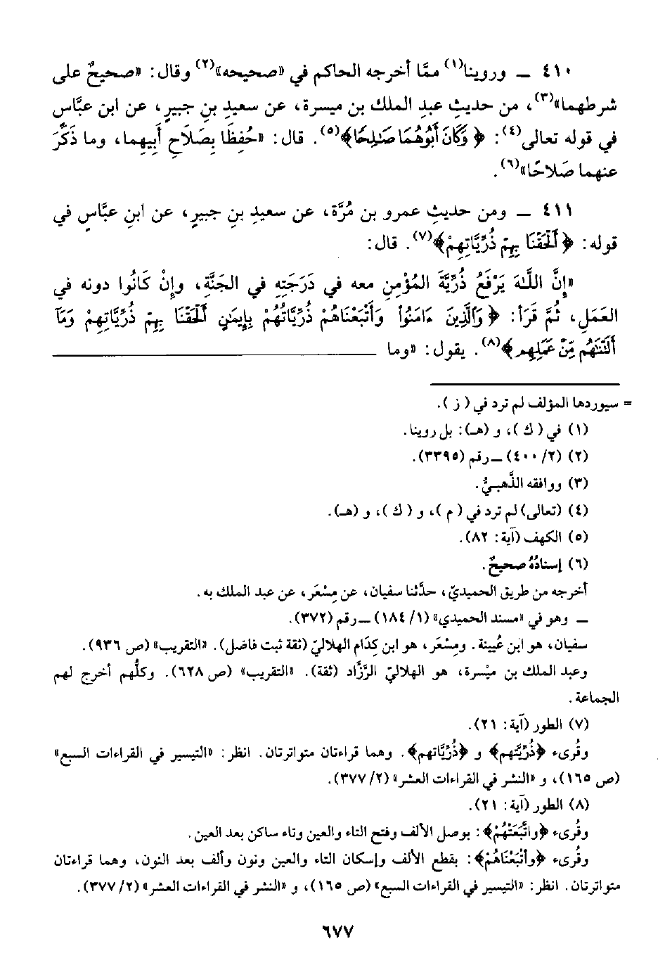٤١١ - ومن حديثِ عمرو بن مُرَّة، عن سعيدِ بنِ جبيرٍ، عن ابنِ عبَّاسٍ في قوله: {أَلْحَقْنَا بِهِمْ ذُرِّيَّتَهُمْ} (¬٧). قال: