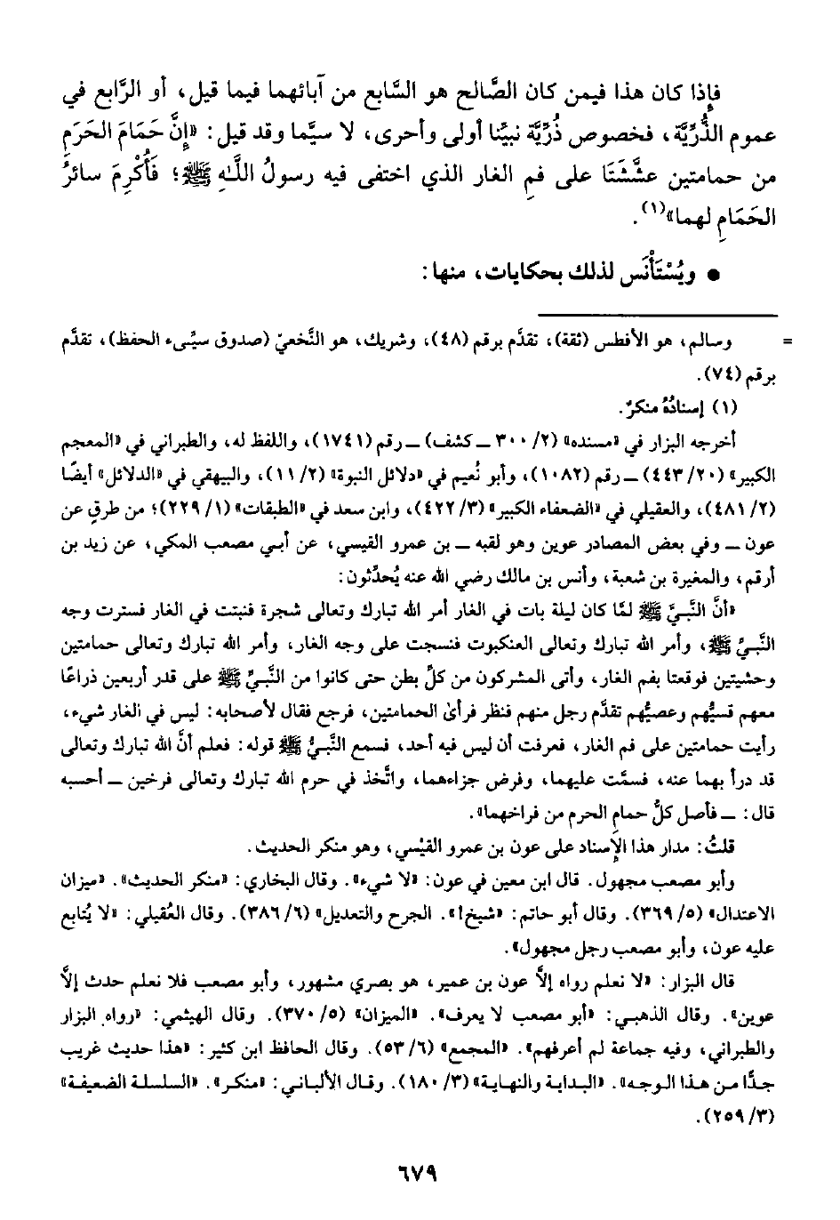 قال البزار: "لا نعلم رواه إلَّا عون بن عمير، هو بصري مشهور، وأبو مصعب فلا نعلم حدث إلَّا عوين". وقال الذهبي: "أبو مصعب لا يعرف". "الميزان" (٥/ ٣٧٠). وقال الهيثمي: "رواه البزار والطبراني، وفيه جماعة لم أعرفهم". "المجمع" (٦/ ٥٣). وقال الحافظ ابن كثير: "هذا حديث غريب جدًّا من هذا الوجه". "البداية والنهاية" (٣/ ١٨٠). وقال الألباني: "منكر". "السلسلة الضعيفة" (٣/ ٢٥٩).