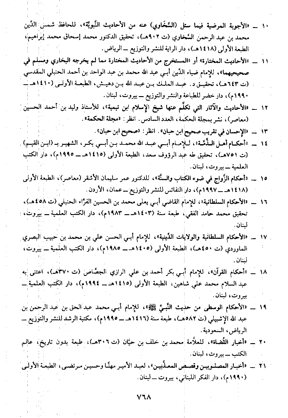 ١٧ - "الأحكام السلطانية والولايات الدِّينية"، للإمام أبي الحسن علي بن محمد بن حبيب البصري الماوردي (ت ٤٥٠ هـ)، الطبعة الأولى (١٤٠٥ هـ - ١٩٨٥ م)، دار الكتب العلمية - بيروت، لبنان.