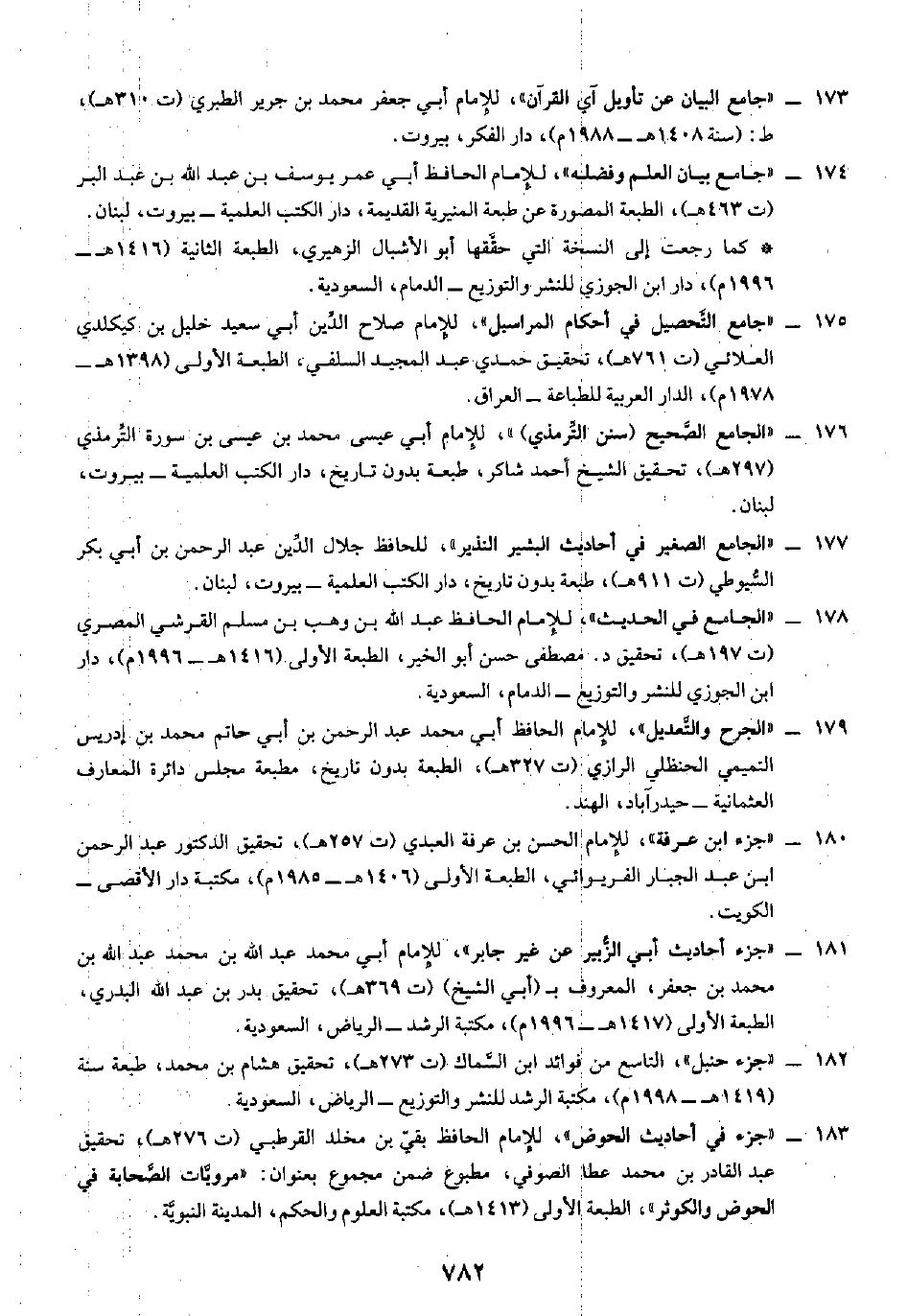 ١٨٠ - "جزء ابن عرفة"، للإمام الحسن بن عرفة العبدي (ت ٢٥٧ هـ)، تحقيق الدكتور عبد الرحمن ابن عبد الجبار الفريوائي، الطبعة الأولى (١٤٠٦ هـ - ١٩٨٥ م)، مكتبة دار الأقصى - الكويت.
