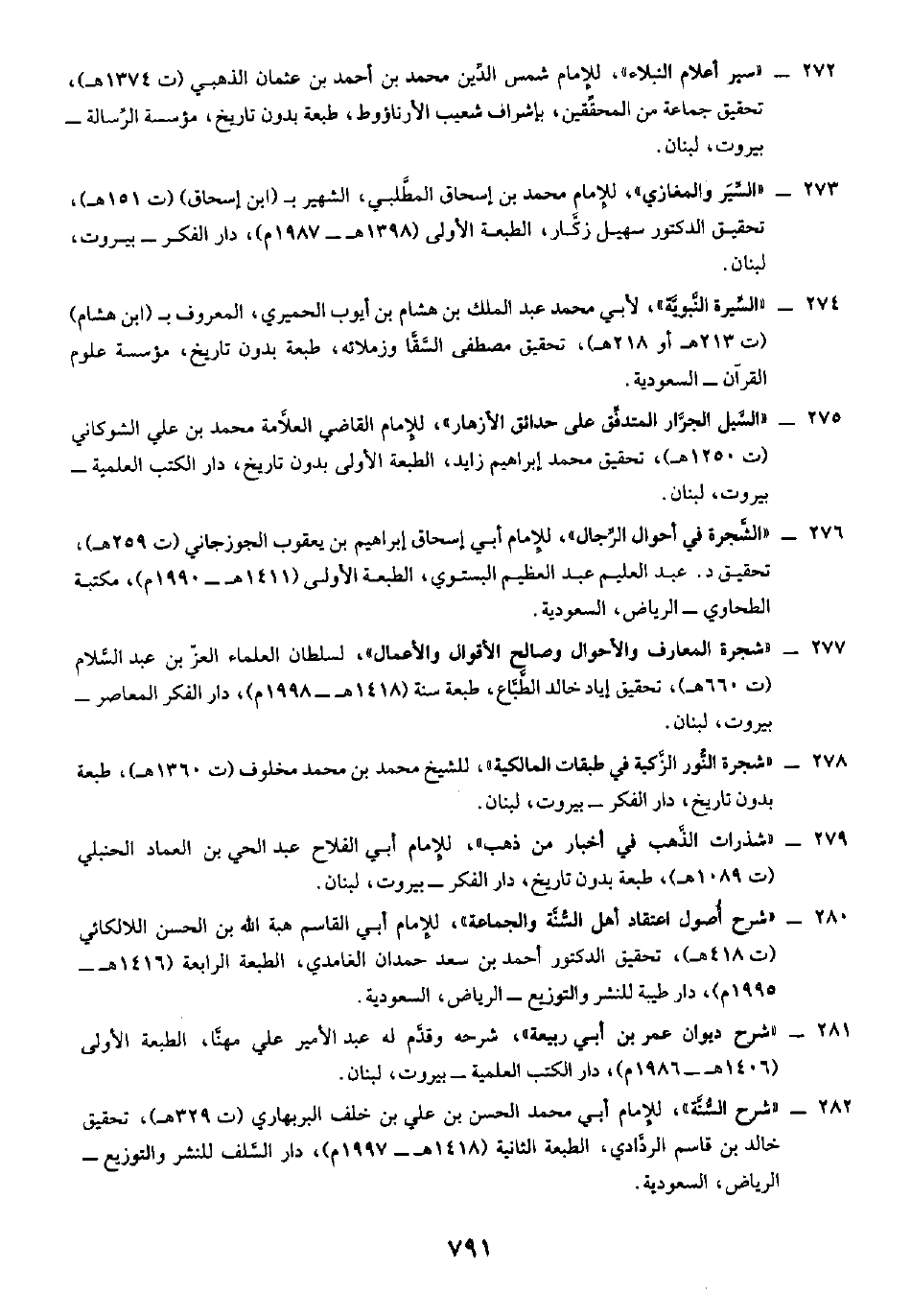 ٢٧٩ - "شذرات الذَّهب في أخبار من ذهب"، للإمام أبي الفلاح عبد الحي بن العماد الحنبلي (ت ١٠٨٩ هـ)، طبعة بدون تاريخ، دار الفكر - بيروت، لبنان.