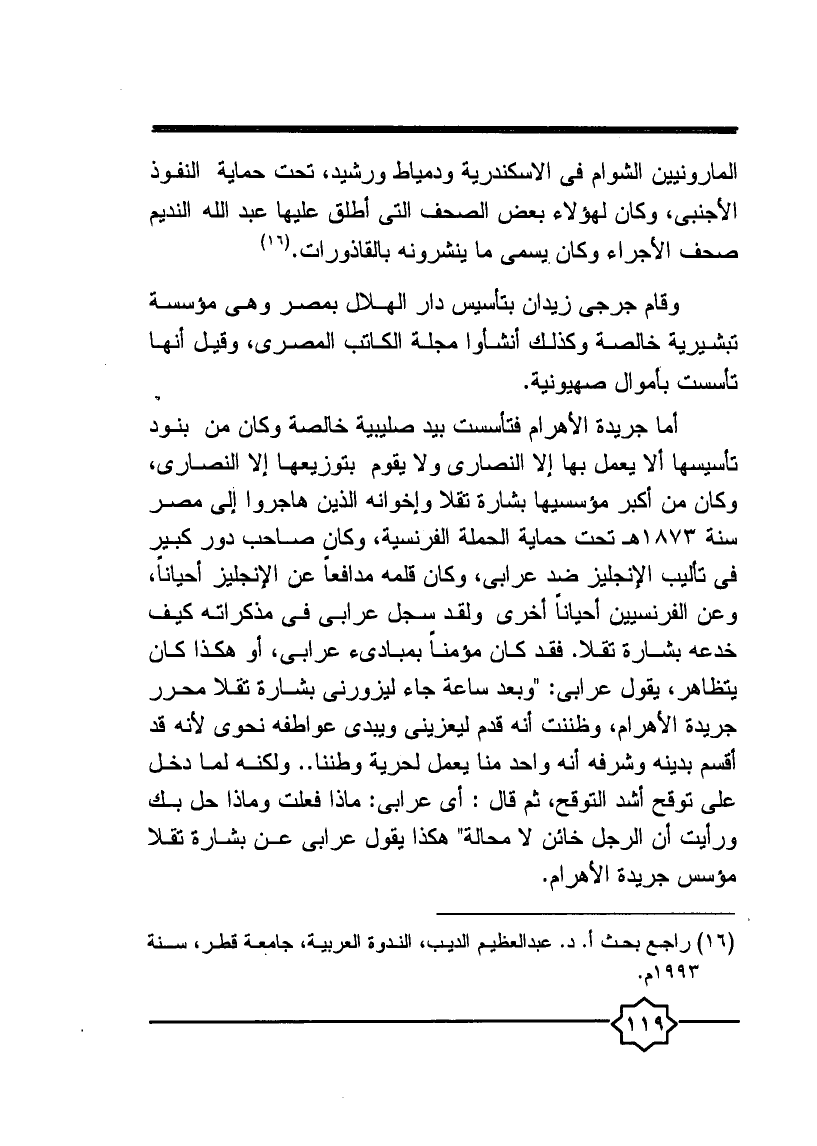 المارونيين الشوام في الأسكندرية ودمياط ورشيد، تحت حماية النفوذ الأجنبي، وكان لهؤلاء بعض الصحف التي أطلق عليها عبد الله النديم صحف الأجراء وكان يسمي ما ينشرونه بالقاذورات1.